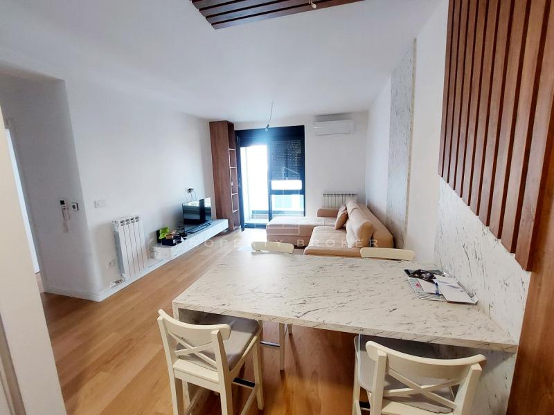 Opis: U ponudi svetao i prostran stan u zgradi u kompleksu New Minel. Stan se nalazi na V spratu i sastoji se od: predsoblja, kuhinje sa trpezarijom, dnevne sobe, terase, dve spavaće sobe i dva kupatila. Stan je kompletno opremljen belom tehnikom i kvalitetnim nameštajem. U cenu zakupa je uračunato i jedno garažno mesto. Odlična povezanost sa svim delovima grada. Blizina marketa, AirPort City-ja, brojnih sedišta korporacija i firmi. Nova zgrada, uredna, okružena zelenilom sa lepim unutrašnjim dvorištem. Alu-drvo stolarija, klima uređaji.