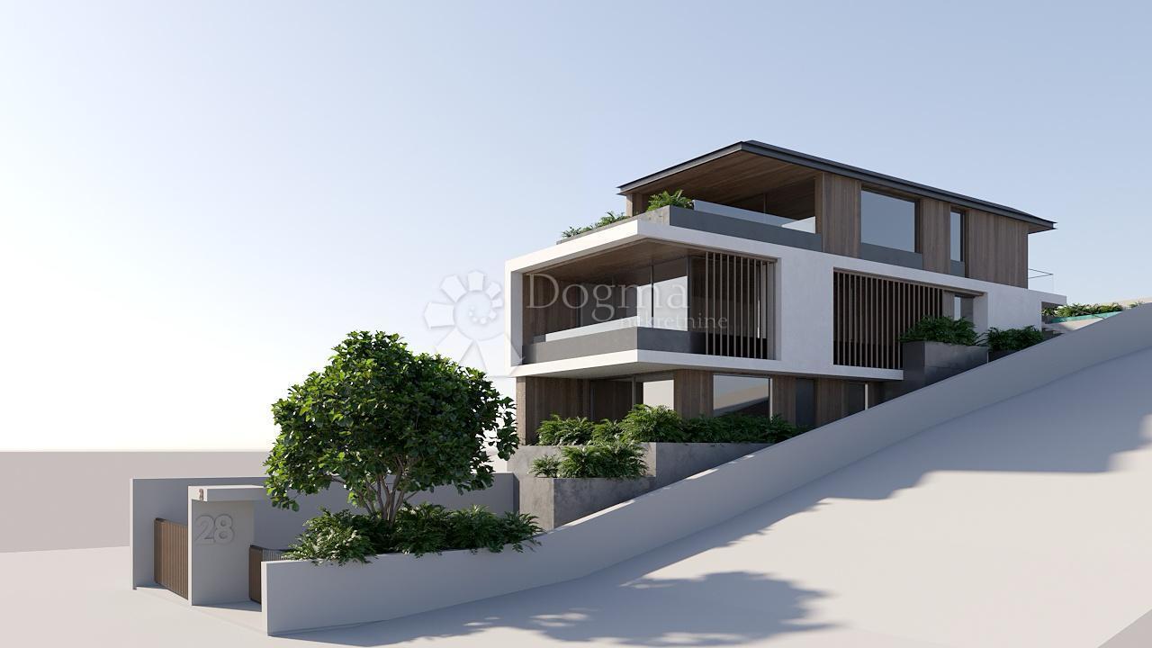 Gornja etaža (69,92 m²): otvoreni dnevni boravak s kuhinjom i blagovaonicom, toaletom te tri terase površina 4,75 m², 19,15 m² i 10,56 m² koje nude prekrasan pogled i obilje prirodnog svjetla....