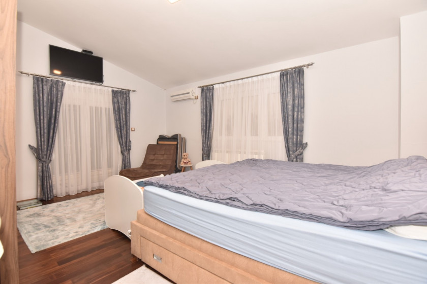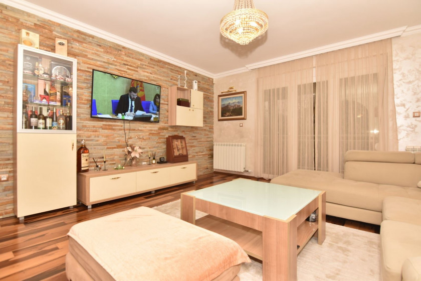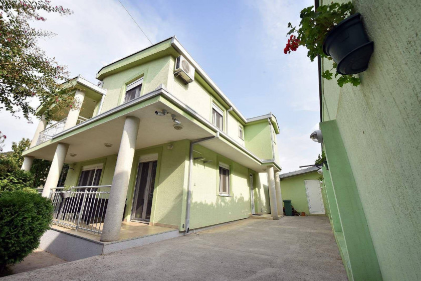 Opis: Luksuzna kuca povrsine 235m2 udaljena oko 4-5 km od centra Pg.Kuca ima centralno grijanje,podno grijanje,klimatizovana.Kuca ima 3 spavace sobe svaka soba ima izlaz na terasu.Veliki dnevni boravak kuhinja i trpezarija,radna soba,ostava.Kuca je lux opremljena .Plac je povrsine 508 m2.Kuca ima video nadzor .Dvoriste je kultuvisano ,ukrasno bilje, voce,masline.