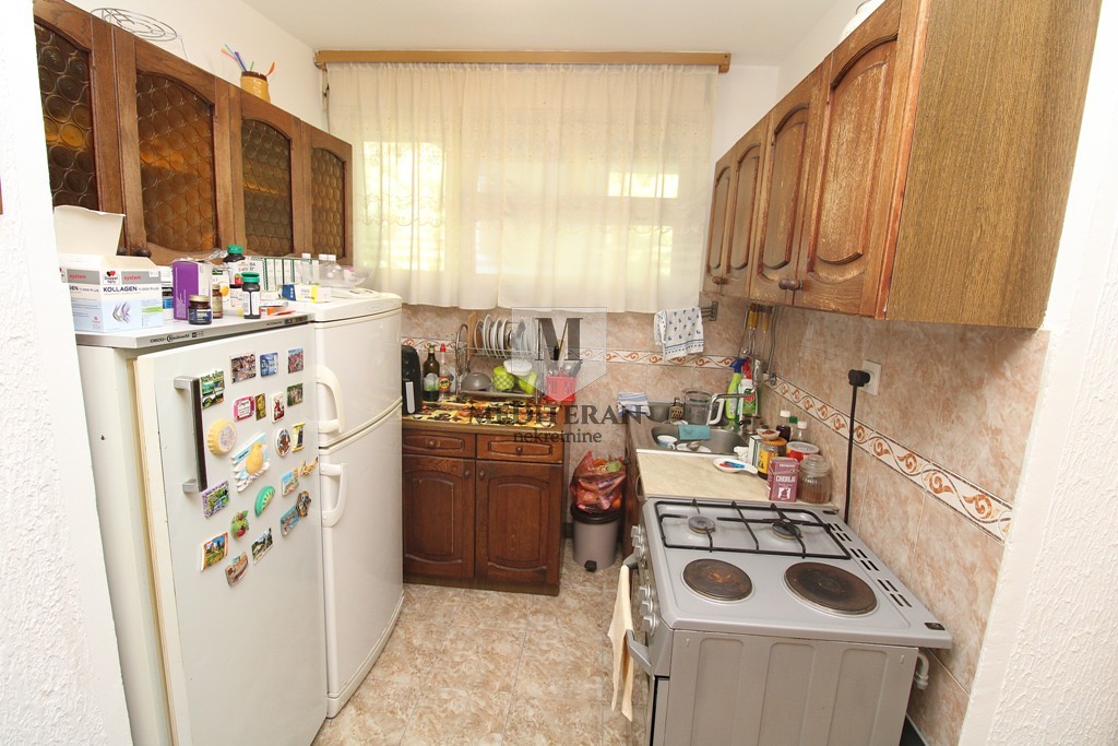 Struktura: ulazni hodnik,kupatilo,toalet,dnevni boravak,dvije spavaće sobe i velika terasa