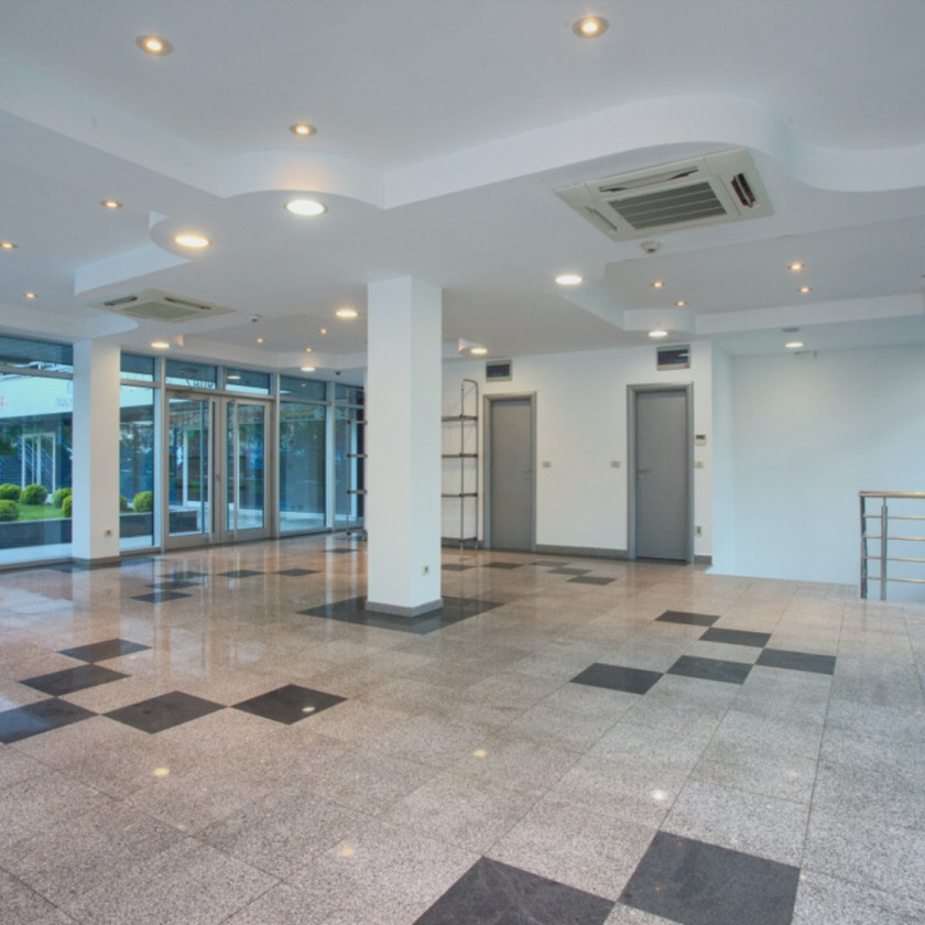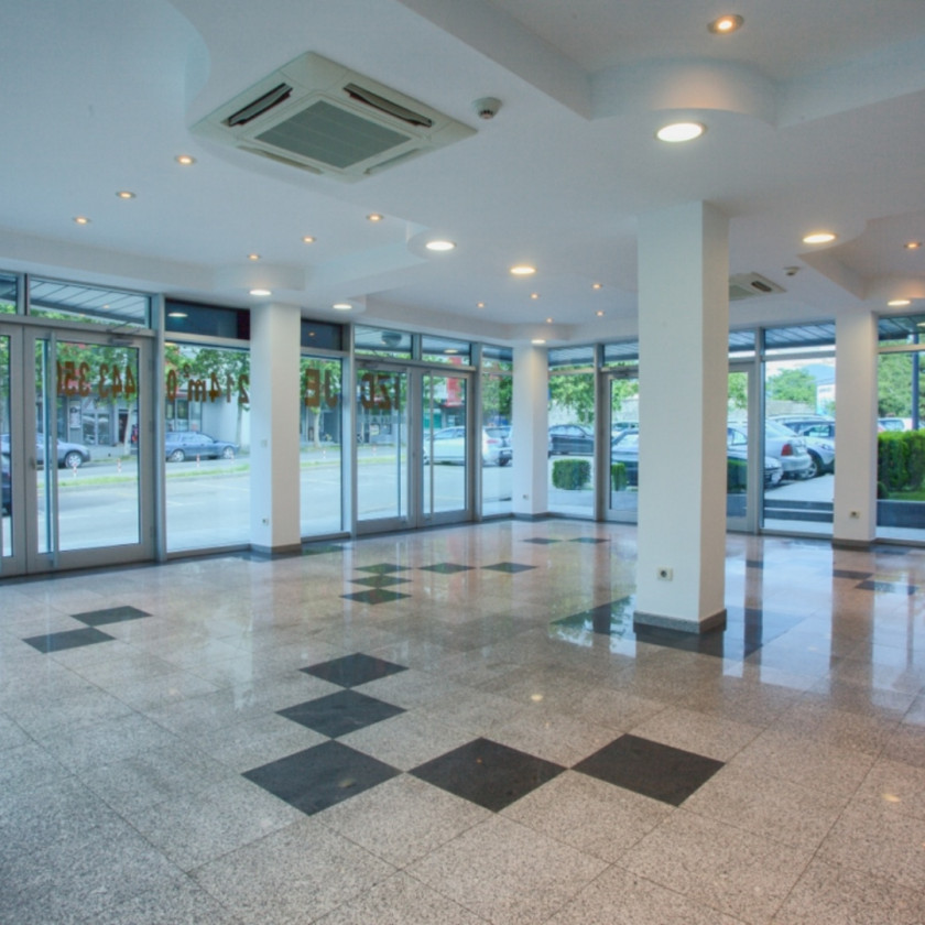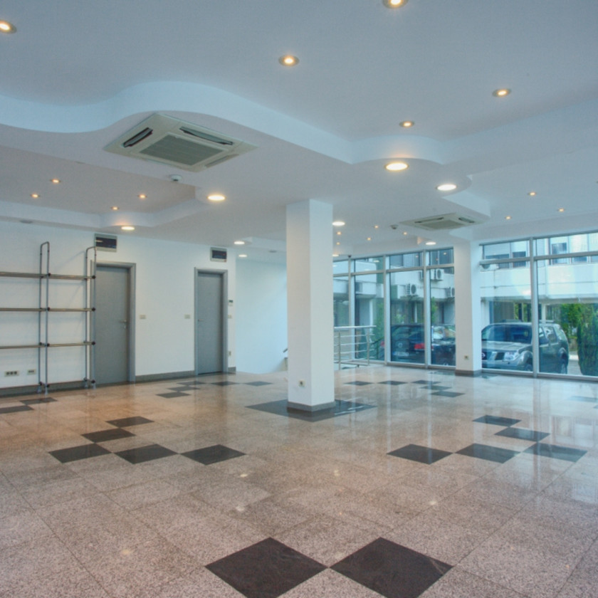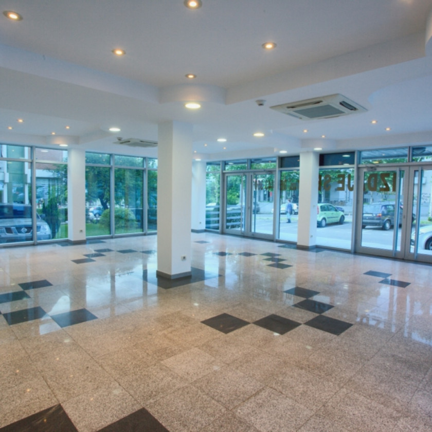 Poslovni je smješten u prizemlju i suterenu zgrade Razvršje, koja se nalazi preko puta autobuske stanice. Izdaje se nenamješten. Opremljen je Toshiba VRV sistemom grijanje/hladjenje, Geberit/Dolomit sanitarijama, Ave Italia elektro opremom, video nadzorom, ozvučenjem. Podovi su mermer i granit.... Na prizemlju i suterenu su dvije velike prostorije, koje se zbog svoje strukture lako se mogu pretvoriti u više manjih.