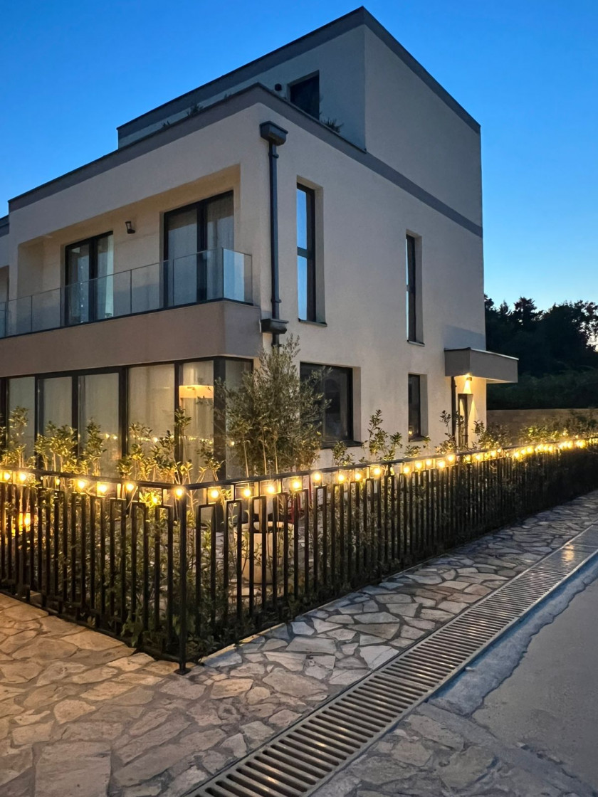 Opis: Prodaje se trospratna gradska kuća sa tri spavaće sobe u zatvorenom kompleksu u Lastvi.