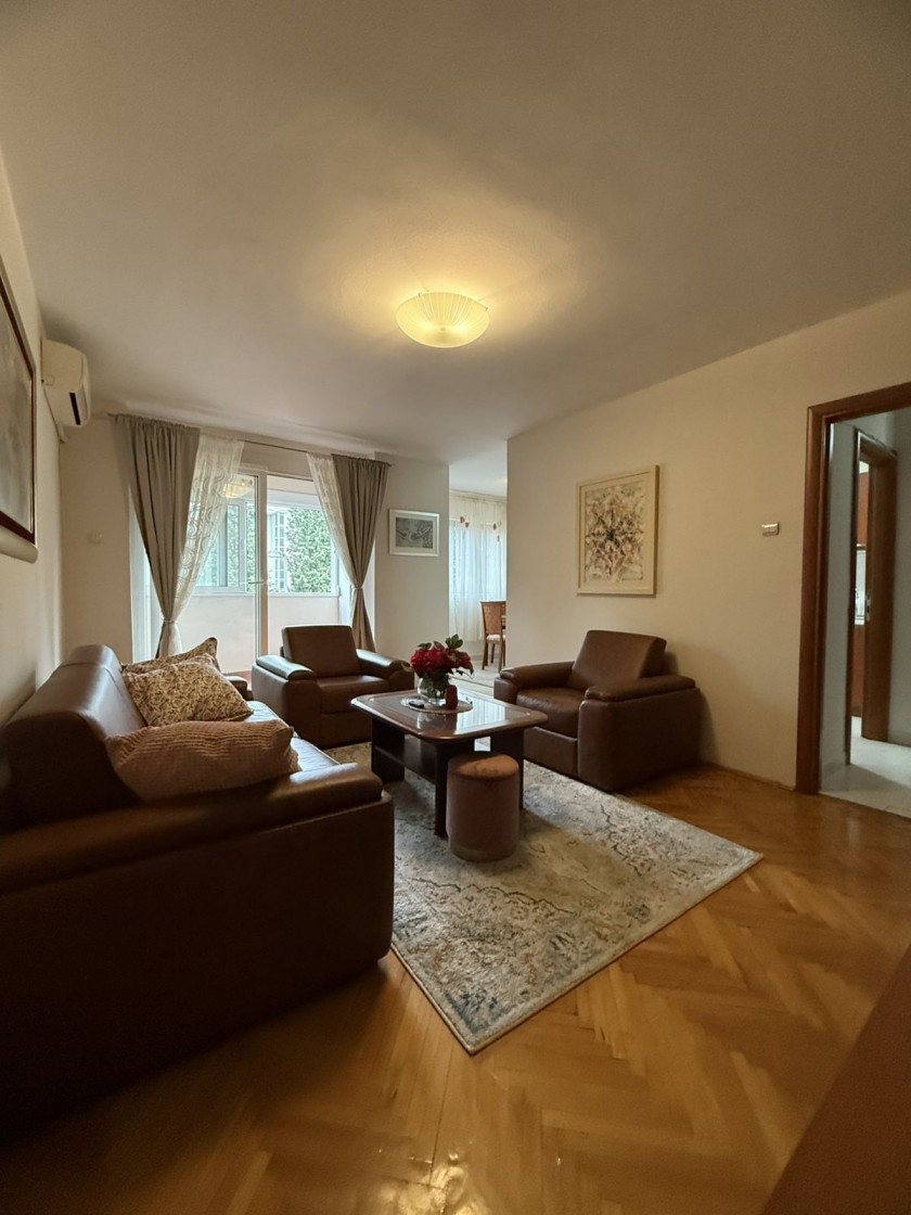 Jednoiposoban renoviran i namješten stan 63m2, Preko Morače, zgrada ALPE BAR-a, drugi sprat. Stan je sjeverno(dvorišno) orjentisan. Javni parking iza zgrade. Blagom adaptacijom se može napraviti dvosoban stan. Cijena 188.000€.