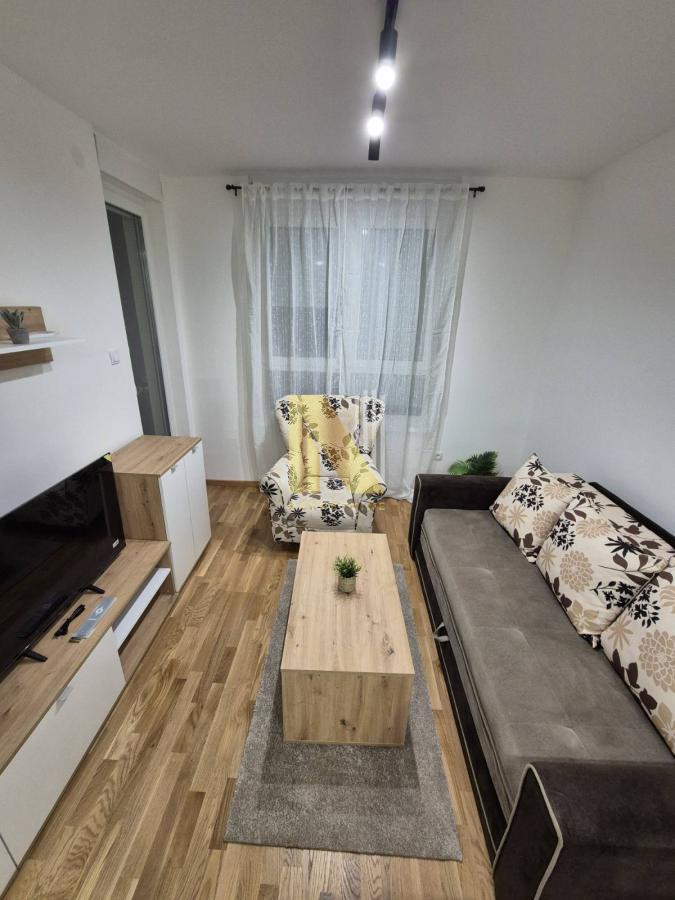 Opis: zdaje se nov jednoiposoban stan u blizini autobuske stanice u ulici Božidara Adžije. Zgrada je nedavno useljena. Sve je novo.