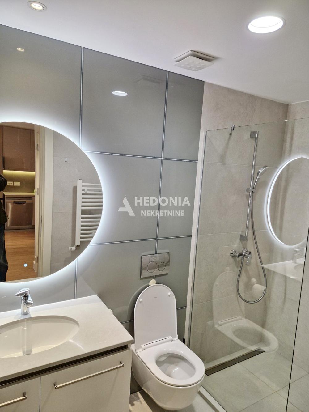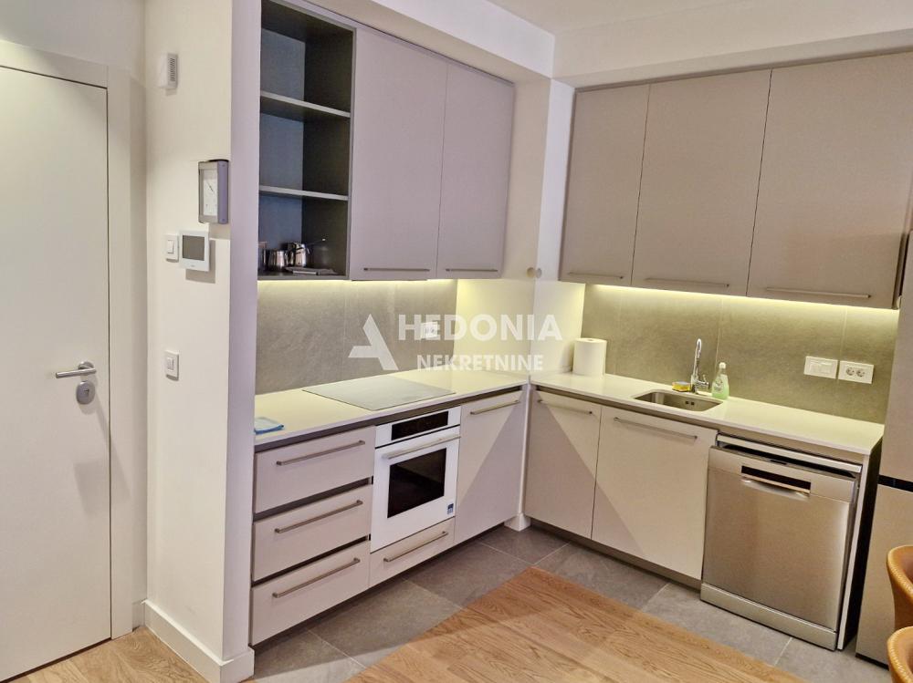 Stan je nov, luksuzan i smešten na drugom spratu zgrade koja ima recepciju. Sastoji se iz dnevno trpezarisjkog dela, kuhinje, spavaće sobe, kupatila i terase. Stan je luksuzno i kompletno namešten (sa ugradnom kuhinjom i belom tehnikom) i kao takav se izdaje na duži vremenski period. Obavezan depozit prema zakupodavcu u visini rente + 50% provizija agencije za usluge posredovanja.
