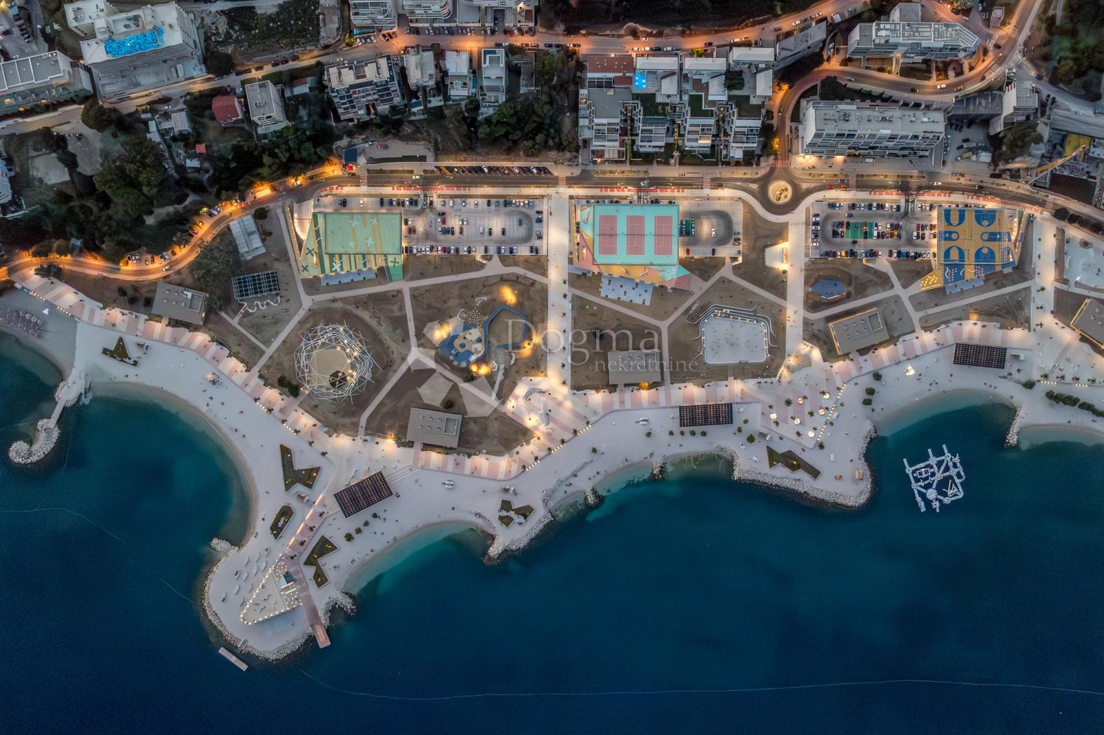 Lokacija je iznimna – more i šetnica su doslovno ispred zgrade, a u neposrednoj blizini nalaze se svi važni sadržaji: trgovine, kafići, restorani, autobusna stanica, fitness centar i plaže....