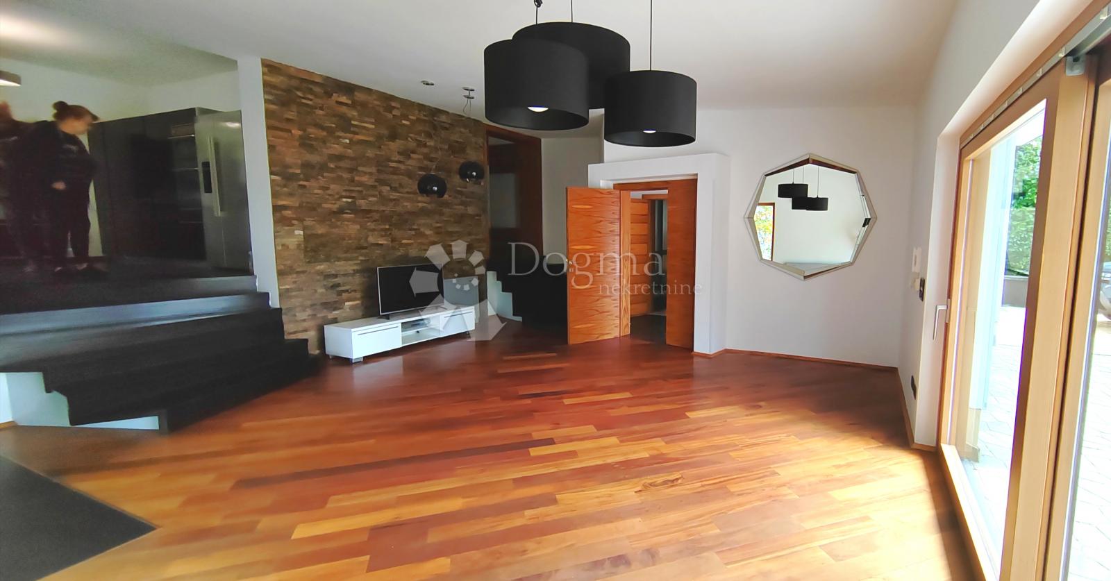 U prizemlju vas dočekuje prostrani dnevni boravak s kaminom – toplo srce doma – koji se otvara prema privatnoj terasi i lijepo uređenom vrtu, savršenom za jutarnju kavu ili večernje opuštanje.