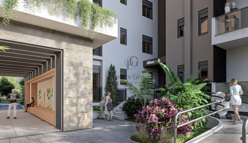 U neposrednoj blizini su supermarket, pekare, prodavnice, apoteka, škola, dječiji vrtić i stanice javnog prevoza. Kompleks se sastoji od pet niskospratnih zgrada (A-E) visine P+3 (4 nivoa). U prizemljima zgrada A i E nalaze se stambeni stanovi, dok se u zgradama B, C i D nalaze poslovni prostori.