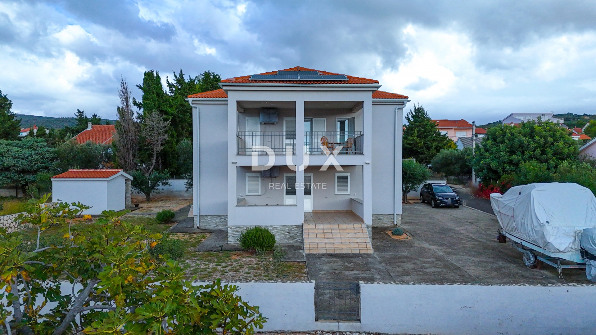 Okućnica nudi savršen prostor za odmor i druženje, uređen vrt te više parkirnih mjesta i ima mogućnost izgradnje bazena. U dvorištu se nalazi i legalizirani pomoćni objekt, idealan kao spremište ili mala konoba....