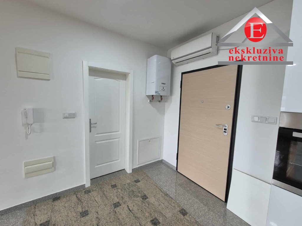 Opis: Dvosoban polunamješten stan površine 53 m2 na IV spratu u kvalitetnoj novoj gradnji. Sastoji se od dnevnog boravka, spavaće sobe, odvojene kuhinje, hodnika i kupatila. Opremljen je centralnim etažnim grijanjem, klima uređajem, Aluminijskom stolarijom, protivprovalnim ulaznim vratima, kvalitetnim parketima, keramikom i sanitarijama. Kuhinja je rađena po mjeri i opremljena je svim električnim uređajima. U spavaćoj sobi je takođe plakar rađen po mjeri. Zgrada posjeduje lift.