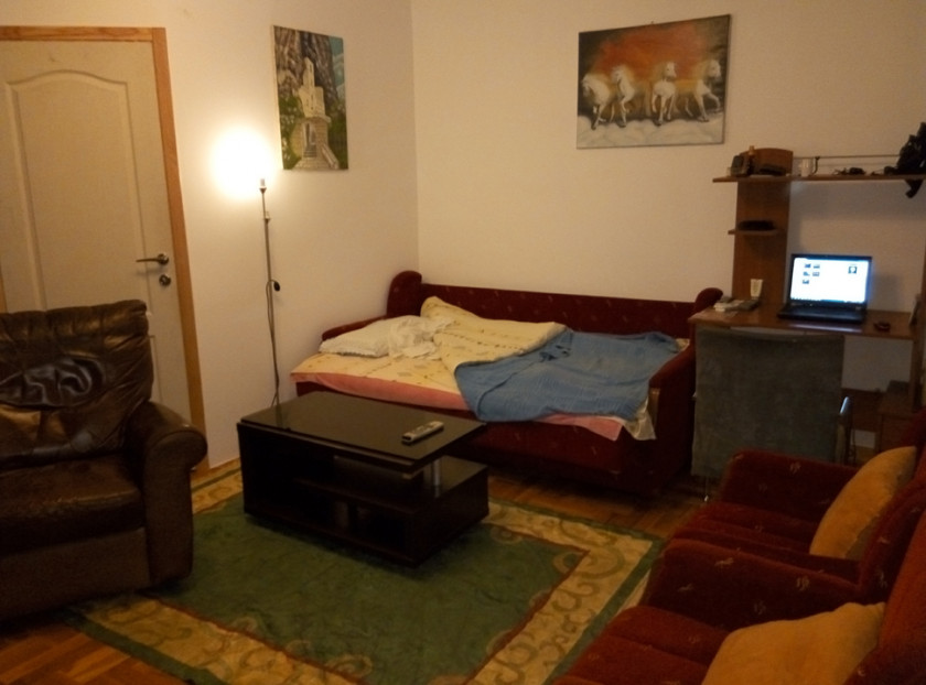 Opis: U komfornom savremeno opremljenom duplex stanu izdajem sobu zaposlenom samcu (samici) na duzi period. Stan se nalazi u neposrednoj blizini zadnje stanice autobusa 16,23 i 25. Svaka soba ima svoju klimu. U stanu su dva kompletna kupatila (dve sobe na jedno kupatilo) ispod zgrade veliki parking za kola. Stan poseduje i centralno etazno grijanje na plin a tople vode ima non stop.