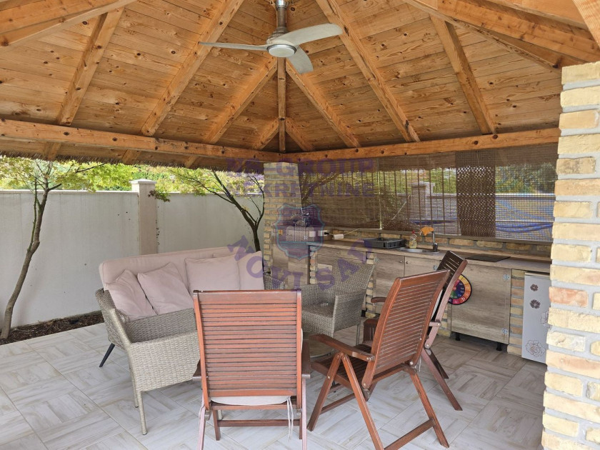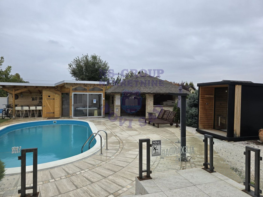 Opis: Exkluzivna prodaja nadaleko najkvallitetnije kuće u okolini Novog Sada. Jedinstvena prilika za kupovinu doma iz snova. Na samo 20km od Novog Sada nalazi se novo izgrađena jednospratna luksuzna villa sa velikim otvorenim bazenom za plivanje, hidromasažnom djakuzi kadom, saunom, privatnim parkingom i garažom, sa velikim dvorišnim prostorom i predivnim letnjikovcem koji je potpuno opremljen sa kuhinjom i zidanim roštiljem. Pogodna za smeštaj do maksimalno 8 odraslih osoba ili za boravak dve porodice, dvoje odraslih + dvoje dece. Villa ALEXANDAR15 je smeštena u luksuznom naselju “Sejke” u Bačkom Petrovcu na samo 20km od Novog Sada i 2km od kompleksa AquaPark PATROLAND, u jako mirnom naseljenom delu ove slovačke varošice. 3 spavaće sobe, 2 dnevna boravka, zasebno klimatizovane prostorije, 2 kupatilaa,balkon terasa, velika terasa – kutak za pušače, garaža unutar vile, video nadzor, otvoreni bazen za plivanje, bazen je 10m sa 5m dubine 1.6m, zatvoreni djakuzi za 5 osoba, sauna za jednu osobu, veliki dvorišni prostor – travnjak, letnjikovac sa kuhinjom, dečiji kutak na otvorenom, natkriveni letnji bar, sto za stoni tenis + pikado, letnje ležaljke, out door tuš pored bazena, muški i ženski biciklovi, dvorišni kutak za čitaoce, četinarski park pored kanala DTD. Pozovite nas i uverite se u našu preporuku za Vas.