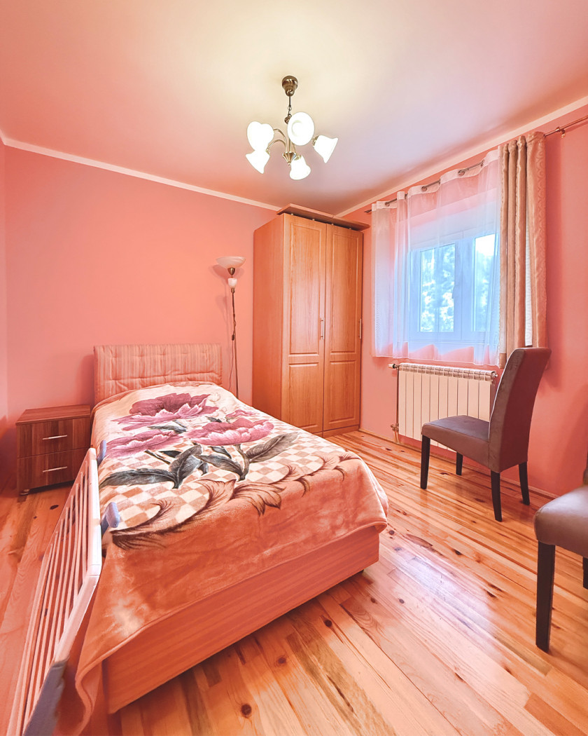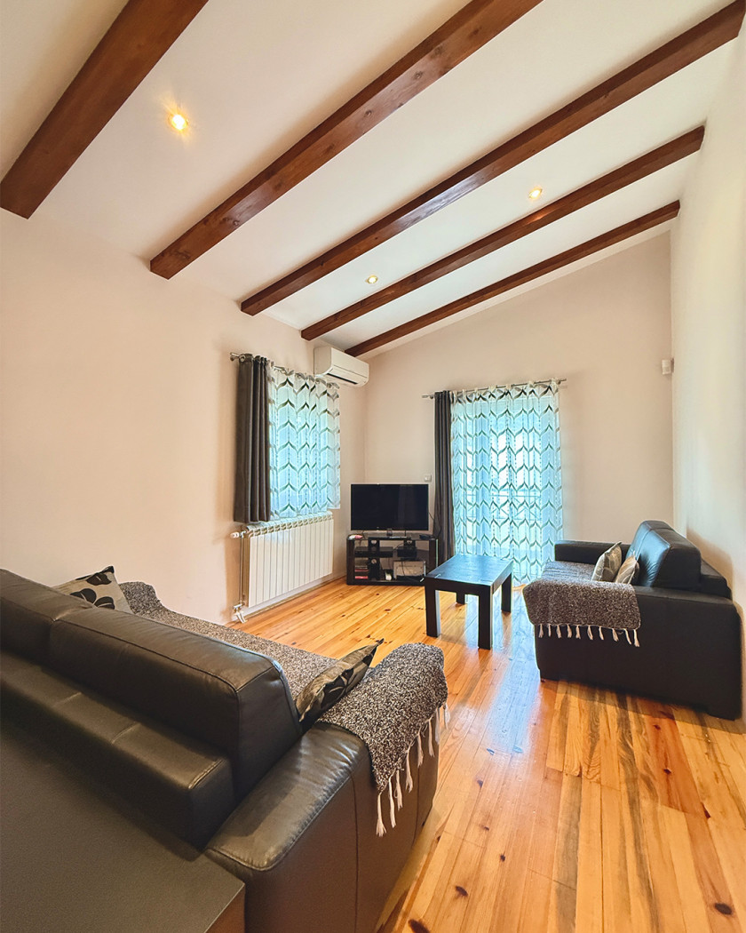 👉 Prvi sprat: 2 spavaće sobe, veliki dnevni boravak, odvojena kuhinja, kupatilo i velika terasa.