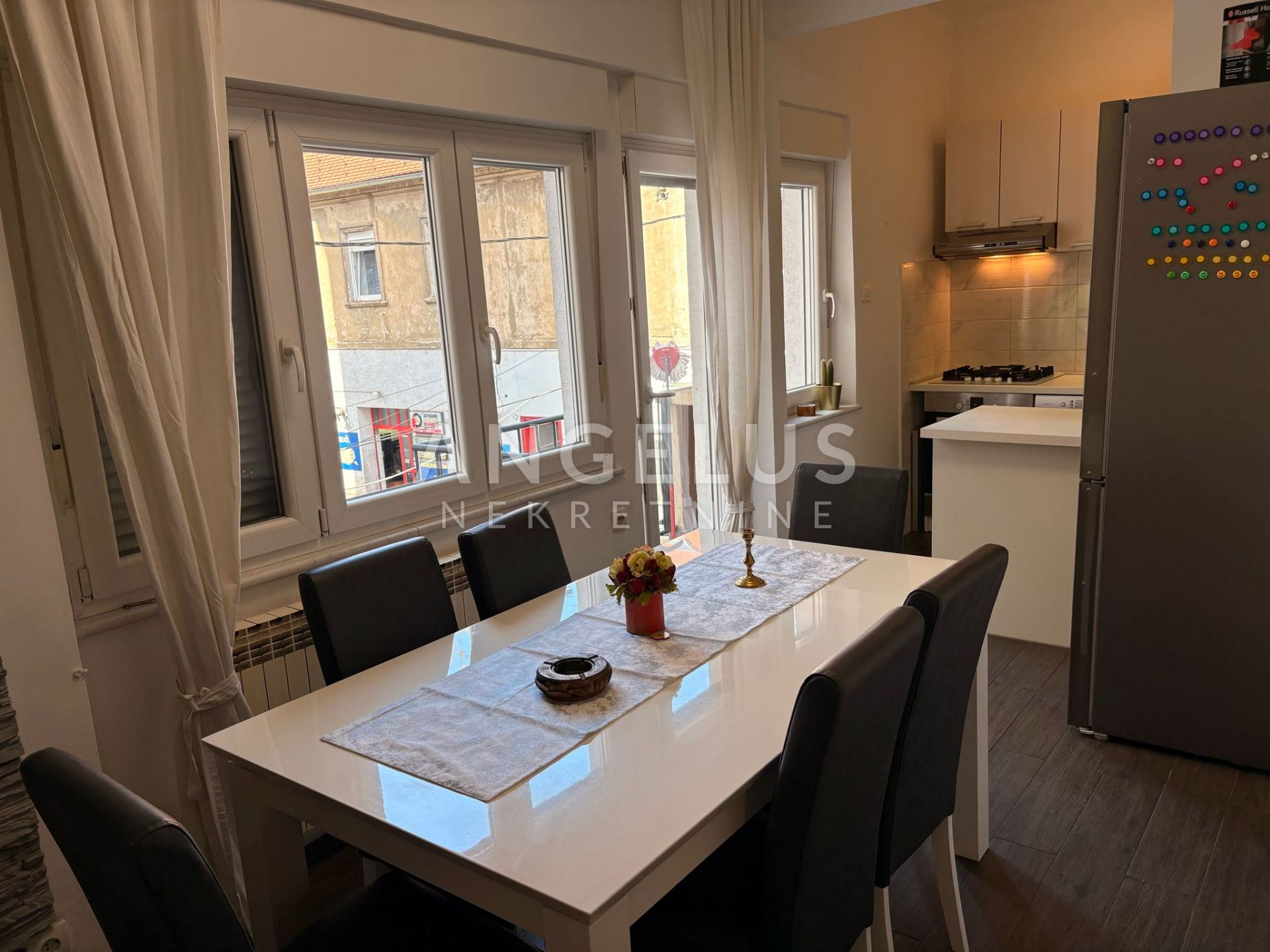 Novoadaptiran i uređen stan sastoji se od ulaznog hodnika, iz kojeg je pristup u sve prostorije u stanu: spavaća sobe je orijentirana na sjever, dnevni boravak orijentiran je na jug i ima otvoreni pogled na zelenilo. Stanu pripada i kupaonica s tušem i perlicom kao i odvojenim WC-om. Stolarija u cijelom stanu je nova i kvalitetna tako da nema nikakve buke, a blagovaonica je orijentirana na dvorište i ima novu potpuno opremljenu kuhinju te ugodno zapadno svijetlo i vrlo praktičan balkon....