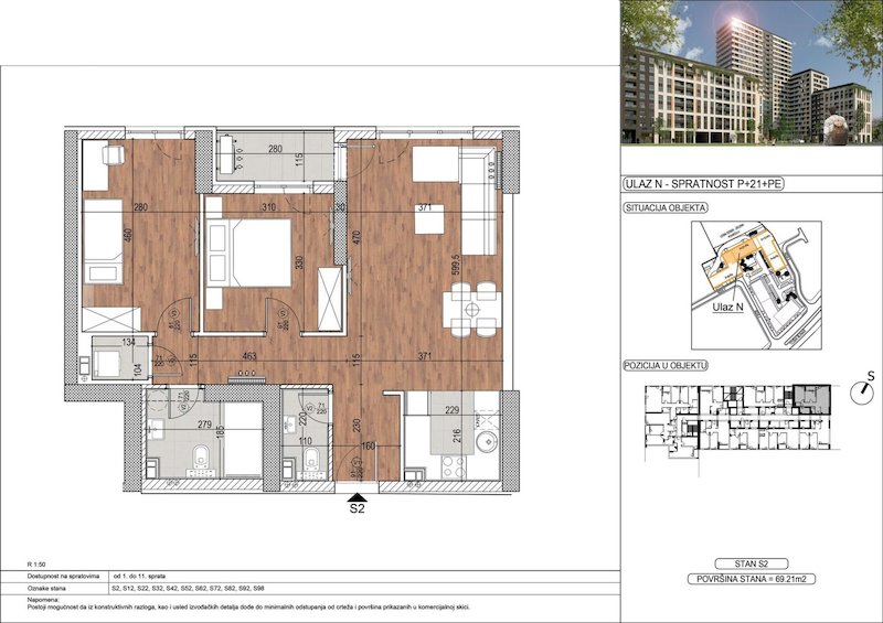 Opis: Prodaje se trosoban stan površine 69,21 m² u modernoj stambenoj zoni