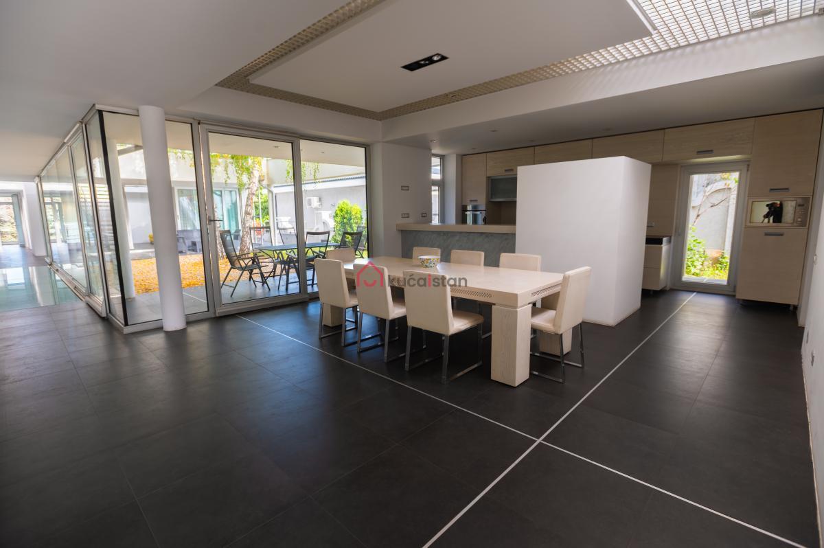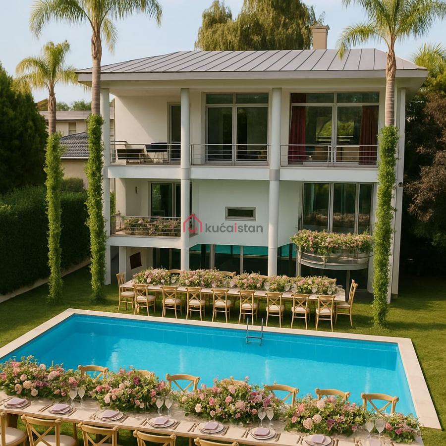 Opis: Ova fenomenalna kuća odiše sofisticiranim dizajnom i savršenom arhitektonskom harmonijom! Enterijer je osmišljen tako da svaki kvadrat ima svrhu, dok visoki plafoni, staklene površine i otvoren plan stvaraju osećaj slobode i luksuza!