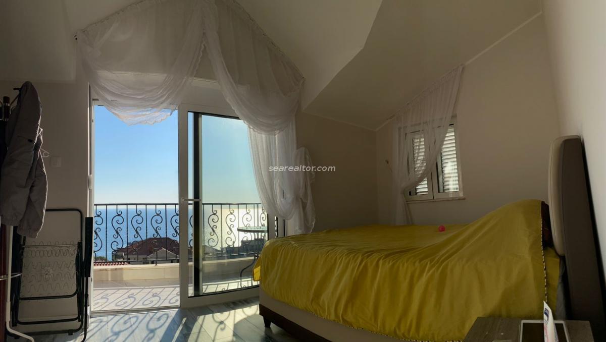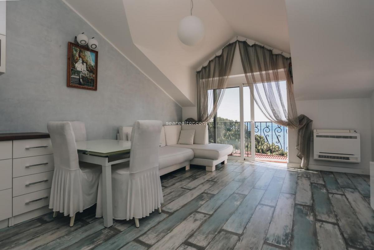 Penthouse with four bedrooms for sale in Sveti Stefan, with a panoramic view of the sea, mountains and the island. The apartment occupies the entire floor of a three-story building and is located on the sunny side, which gives it plenty of light and space. The area according to the property sheet is 82 m², it consists of a spacious living room with a kitchen area and a terrace, four bedrooms, two bathrooms and a hallway, with access to the terrace from the living room and all bedrooms. It is sold fully furnished and equipped with appliances, with renovation of European quality and underfloor heating in the bathrooms. Freestanding air conditioners for heating and cooling are installed, and the balconies have wrought iron railings. It is about a ten-minute walk from the sea, and there is free parking around the building. The property is legal, with a building and use permit.
