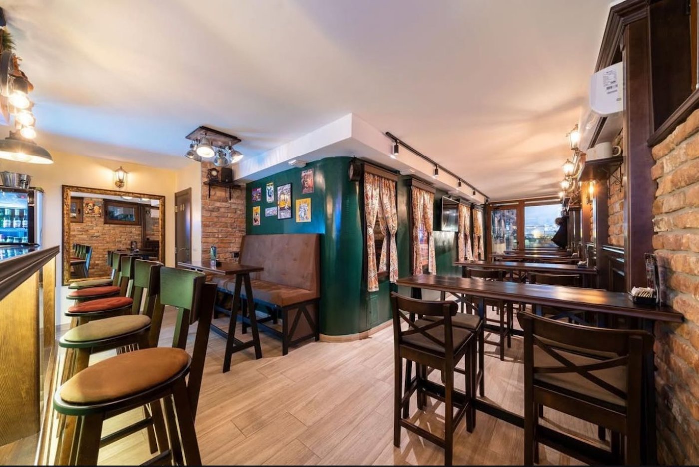 Unutrašnjim prostorom koji sadrži 6 stolova i šank sa 7 barskih stolica, toalet.