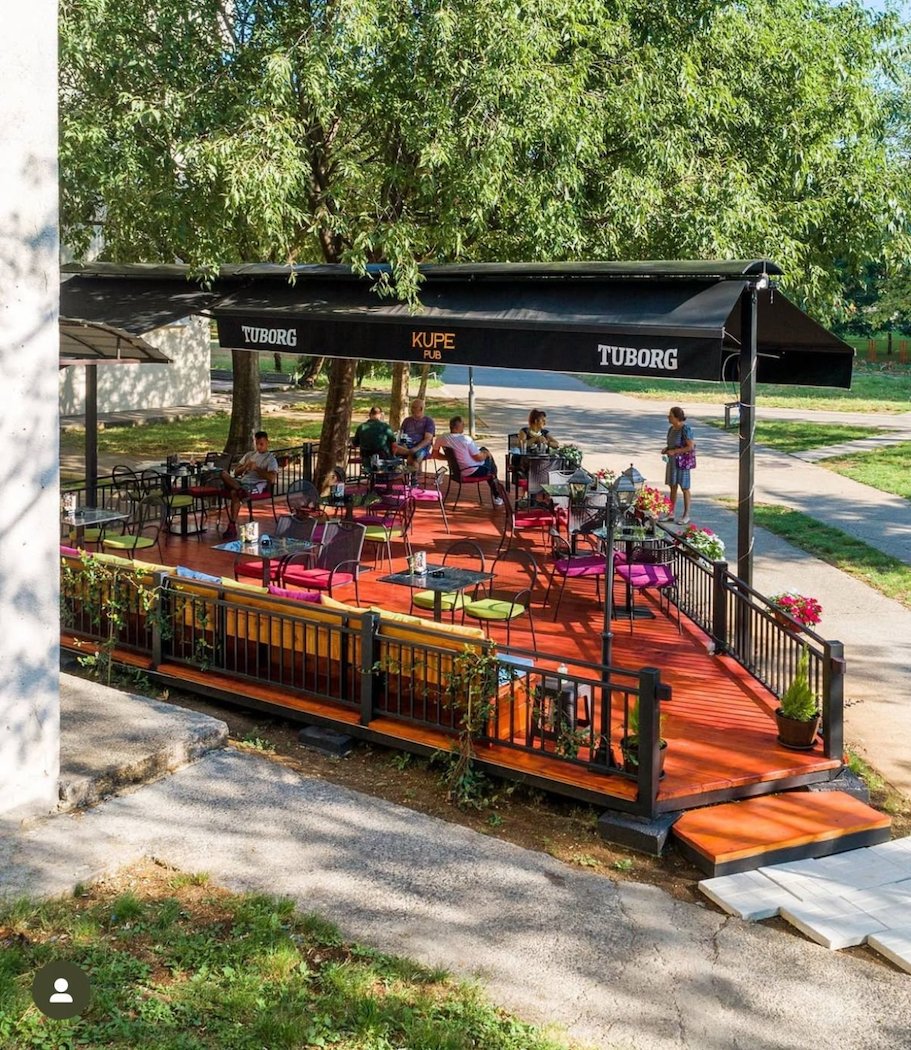 Veća ljetnja bašta na zelenoj površini (preko 60 m²) sa 13 postavljenih stolova
