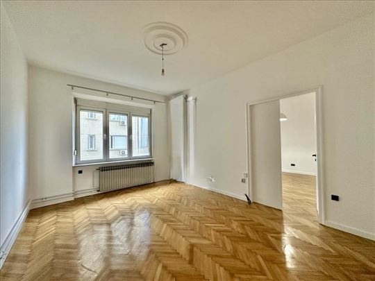 Opis: Trosoban uknjizen na 81m2 mereno 93m2, kompletno renoviran stan na najprestiznijoj lokaciji u blizini Narodnog pozorista, salonski, funkcionalnog rasporeda, dvostrano orijentisan istok - zapad, na 2. spratu od 4, zgrada sa liftom.