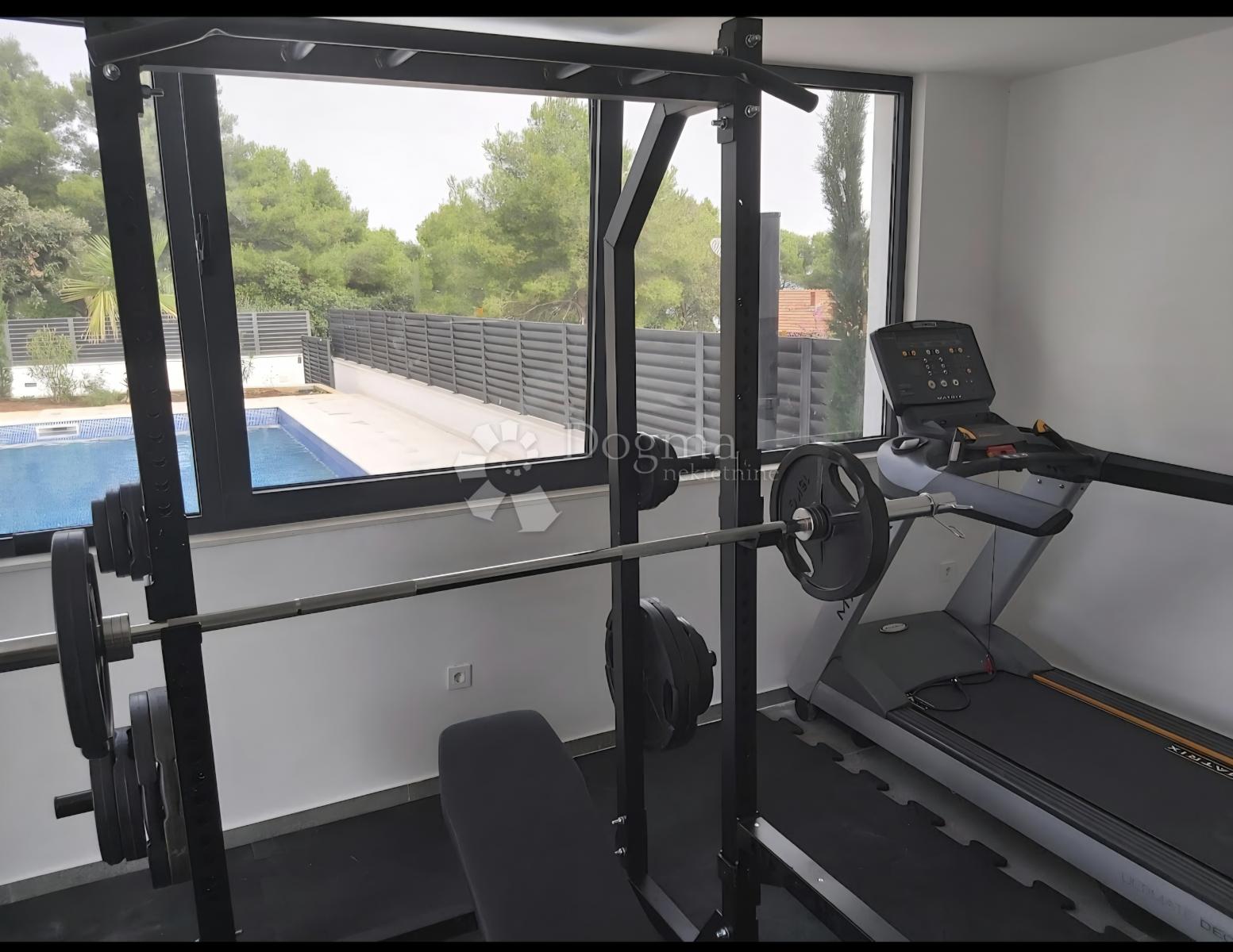 U sklopu okućnice nalazi se bazen površine 42 m²( s hidromasažom,i elektrolizom), vanjski tuš, četiri parkirna mjesta i uređeni vrt s automatskim navodnjavanjem. Vila je opremljena solarnom elektranom snage 10 kW te je priključena na javnu struju i vodu, s vlastitom septičkom jamom.