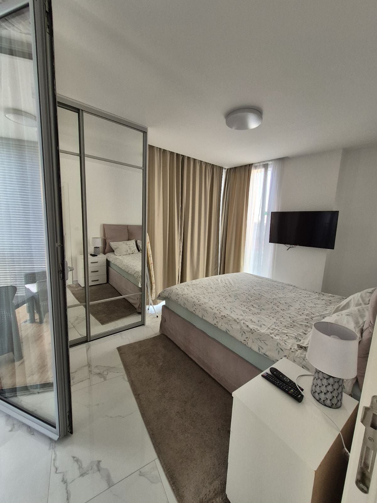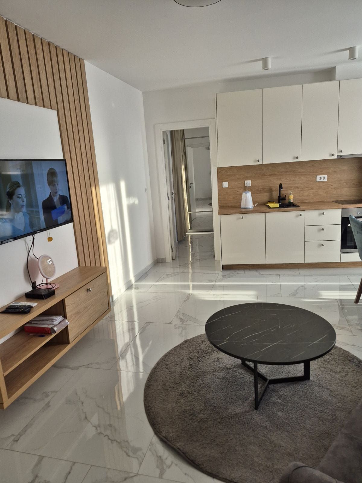 Stan je potpuno opremljen modernim nameštajem i poseduje podno grejanje, pružajući komfor i prijatan ambijent.