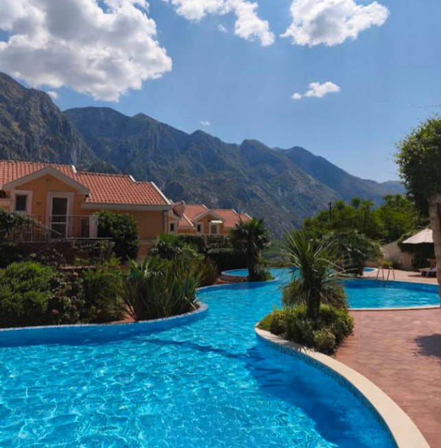 Ovaj jednosoban stan površine 63 kvadratna metra nalazi se na drugom spratu. Opremljen je modernim aparatima i kuhinjskim posuđem. Nalazi se u zatvorenom kompleksu sa dečijim igralištem, rekreativnim prostorima i bazenom. Stari grad Kotor (10 minuta) i čuveni Perast su u blizini. Plaža je udaljena 10-15 minuta hoda.