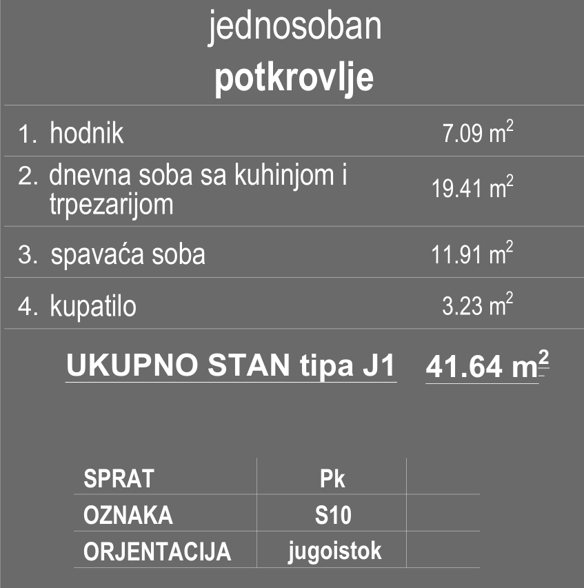 Opis: Ovaj jednosoban stan površine 42m2 , u potkrovlju sa liftom, na Zabjelu, pruža jedinstven doživljaj življenja.