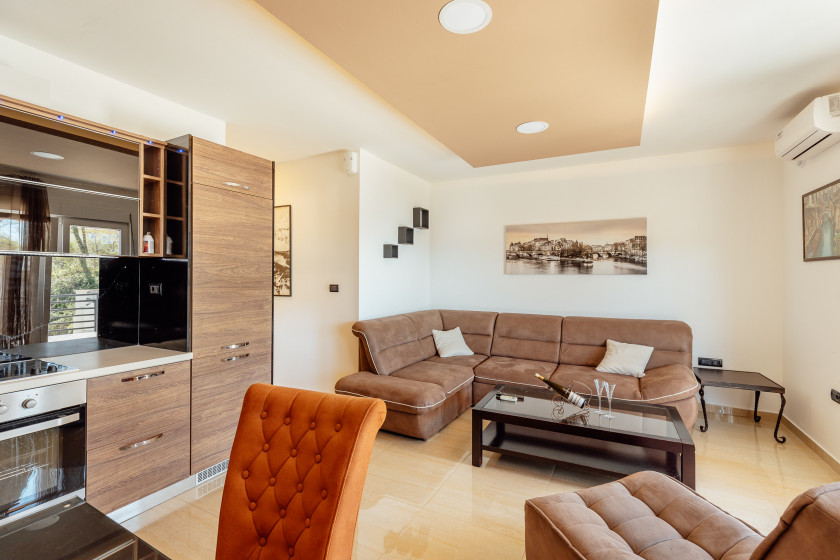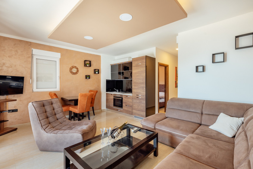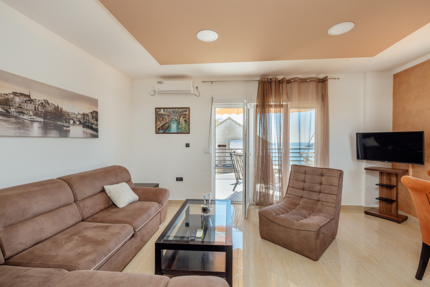 Opis: Jednosoban stan, sa prostranom terasom i pogledom na more. Obezbjedjen parking.