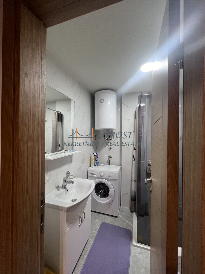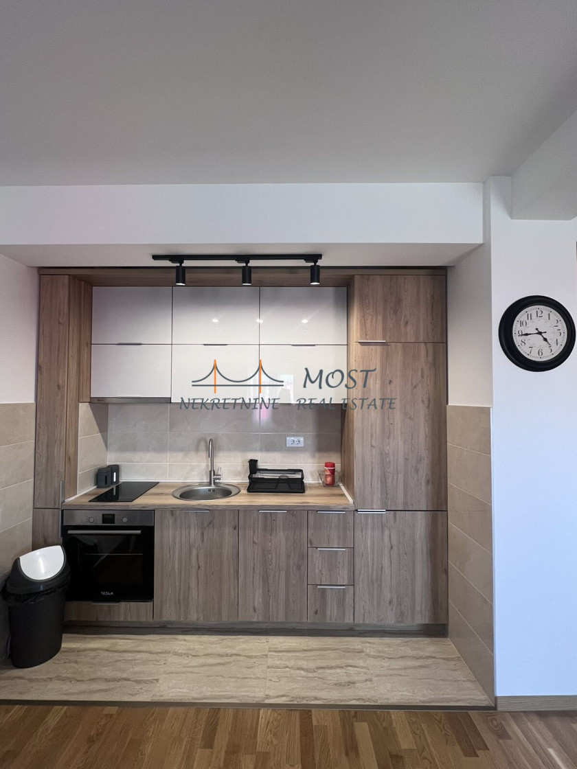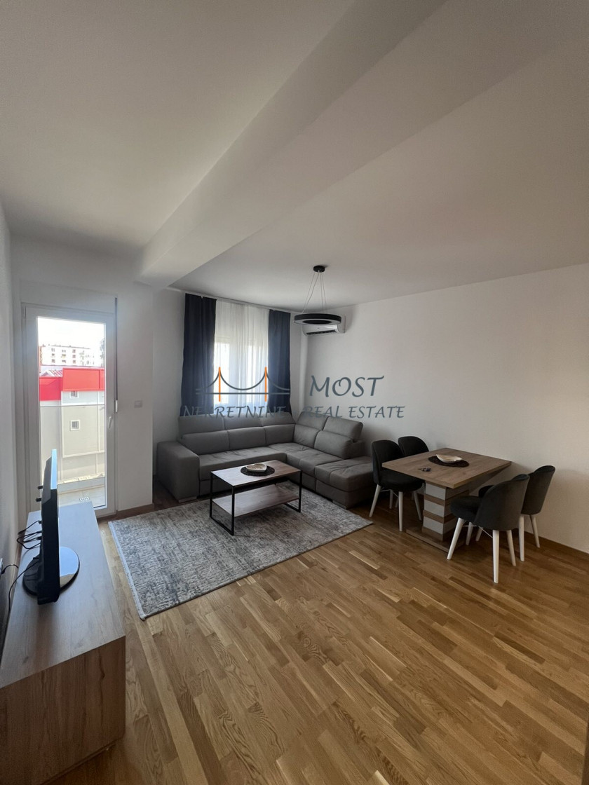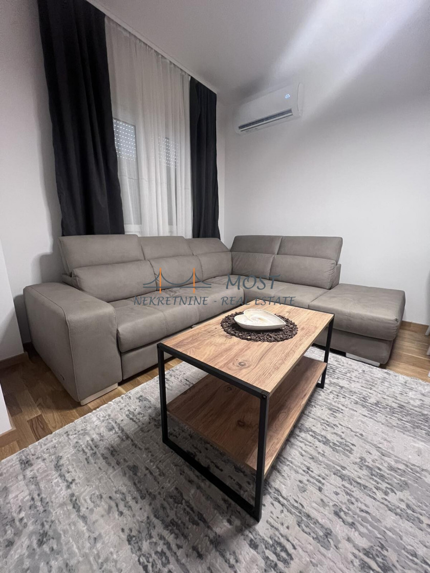 Opis: Izdaje se moderan, luksuzno opremljen jednosoban stan površine 45m², smješten na trrecem spratu stambene zgrade na Zabjelu, u blizini Multicoma. Stan je kompletno i moderno namješten, opremljen svim potrebnim uređajima (TV, klime, mašina za veš, mašina za suđe, ugradna rerna, ploča, frižider itd). Zgrada posjeduje lifti i video nadzor.