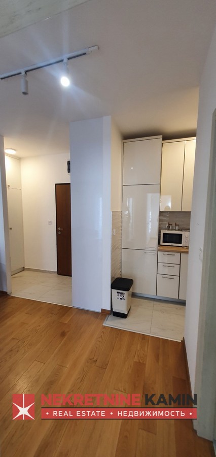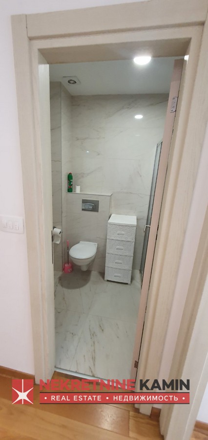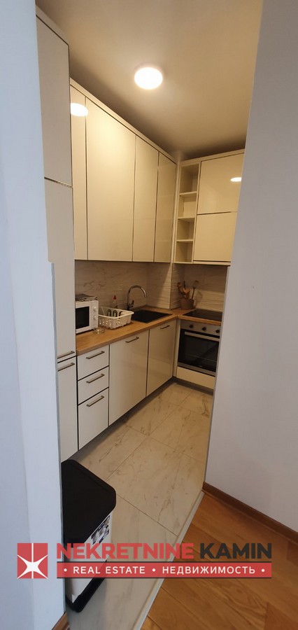 Rasporedjen je na dnevni boravak sa kuhinjom, spavaću sobu, kupatilo i terasu.