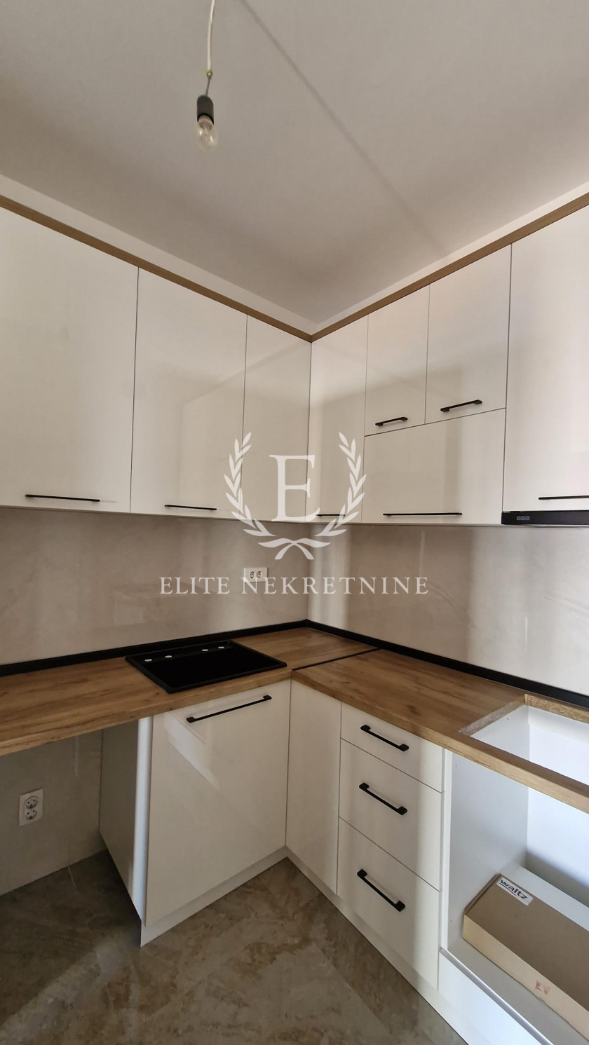 Stan je prazan, osim što poseduje kompletnu kuhinju sa elementima i belom tehnikom, što pruža idealnu priliku za uređenje po sopstvenom ukusu.