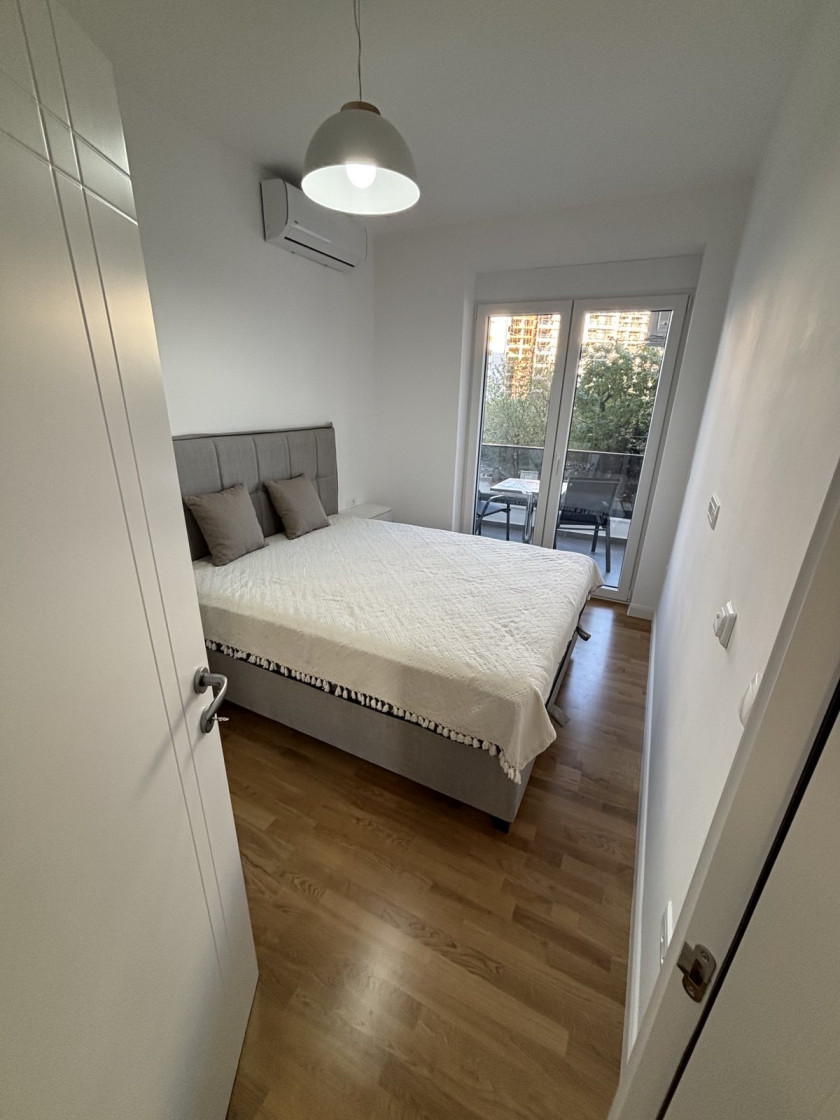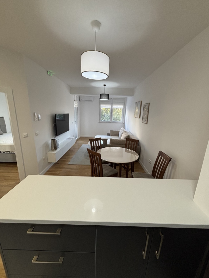 Opis: Izdaje se nov jednosoban stan povrsine 50 m2 + ostava 2 m2 u strogom centru grada. Stan je odlicno opremljen na I spratu, split sistem grejanje/hladjenje, podno grejanje, slobodan parking ispred zgrade sa rampom. Cena zakupa stana je 600 e mesecno. Vise info na tel 069 495 743