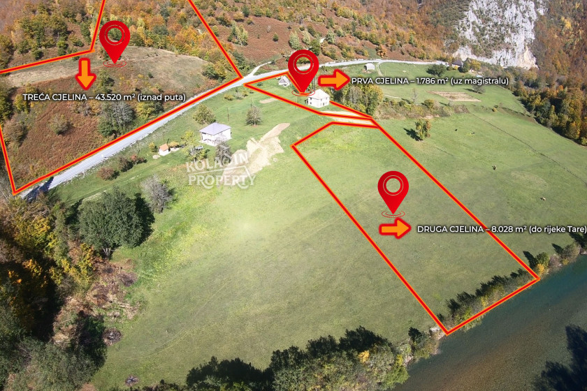Na svega 11 kilometara od centra Kolašina, i 4 kilometra od skretanja ka Nacionalnom parku Biogradska gora, nalazi se imanje koje objedinjuje sve ono što Tara i Kolašinski kraj mogu ponuditi – netaknutu prirodu, rijeku, livade, šume i otvorene mogućnosti za investiciju.