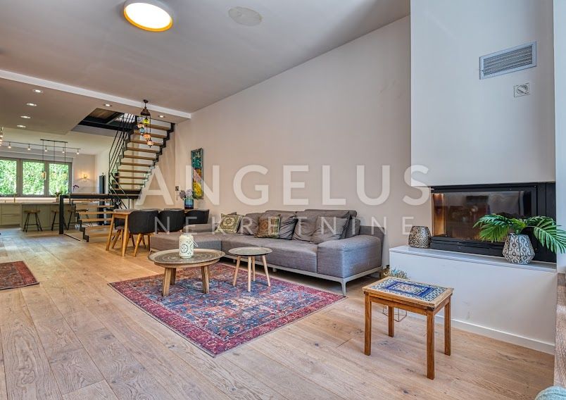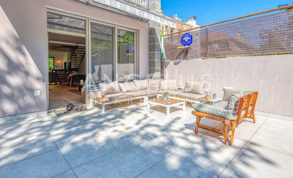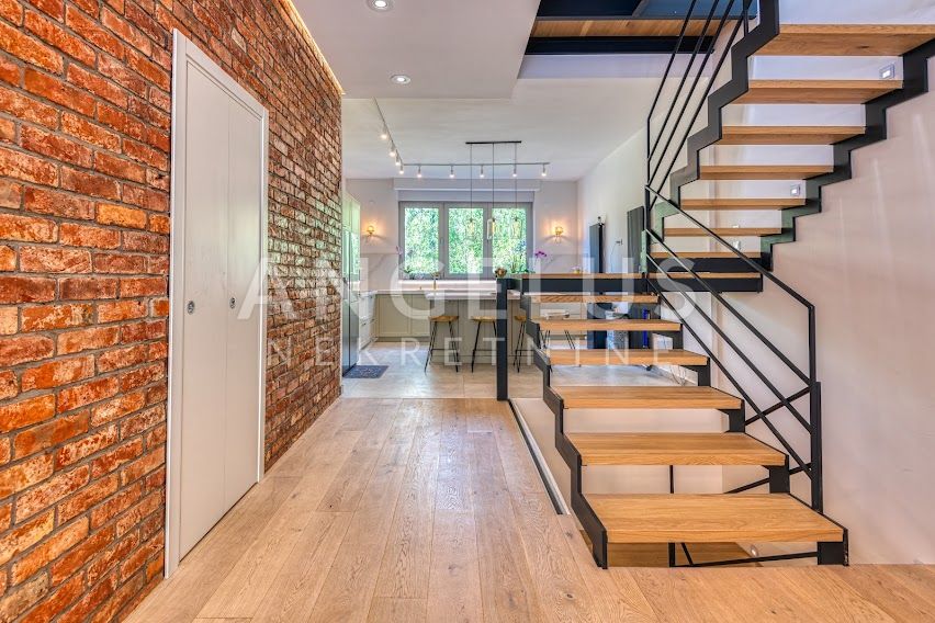 Kuća je izgrađena 40-ih godina prošlog stoljeća, a stan je kompletno renoviran i konstrukcijski ojačan prije tri godine. Stan površine 204 m2, prostire se na 4 etaže. U podrumu se nalazi gostinjska soba sa kupaonicom i spremištem, a u prizemlju je ulazni prostor i radna soba. Na prvom katu, koji je zapravo prizemlje sa dvorišne strane je velika otvorena kuhinja povezana sa dnevnim boravkom i izlazom na vrt (50 m2) i kupaonica, a na zadnjoj etaži su dvije spavaće sobe sa svojim kupaonicama i 2 balkona (3 m2, 17 m2). Veliku dječju sobu je moguće pregraditi u dvije manje. Plinsko centralno grijanje, namjleštena kuhinja, ugradbeni ormari, hrastov seljački pod, aluminijska stolarija, kamin, Daikin klimatizacijski uređaji s inverterom. Javni naplatni parking je dostupan ispred kuće....