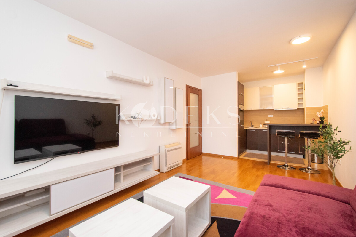 Struktura: Dnevna soba sa kuhinjom i trpezarijom koja ima izlaz na terasu, spavaća soba, ulazni hodnik i kupatilo.