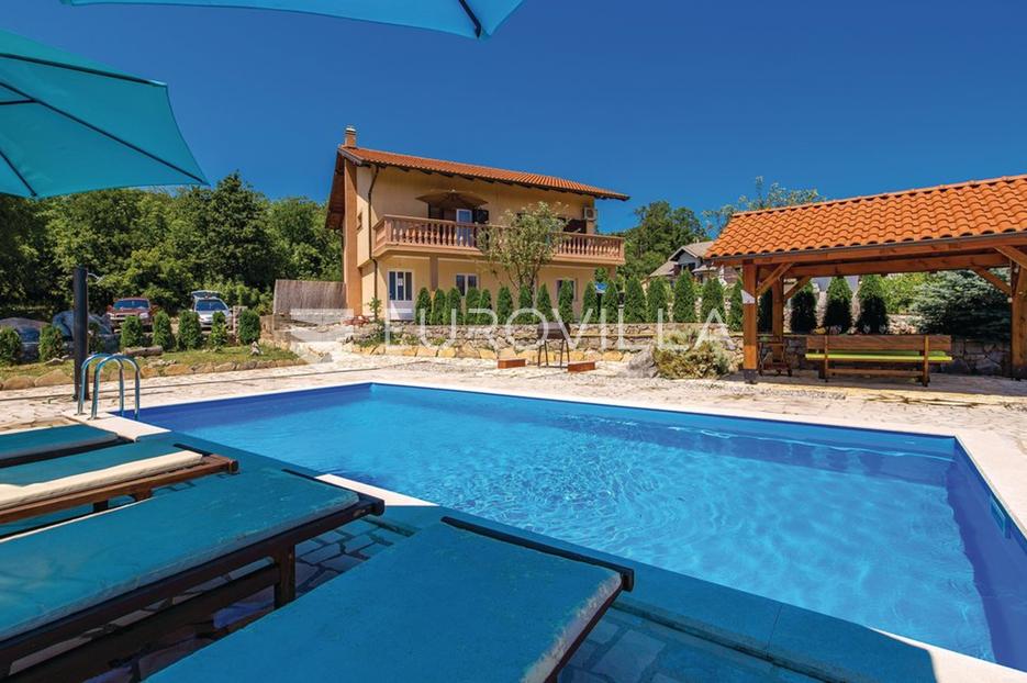 Opis: U mirnom dijelu nalazi se samostojeća kuća površine 170 m², smještena na okućnici od 675 m², okružena zelenim pojasom i privatnošću.Kuća se sastoji od tri stana, pružajući fleksibilne mogućnosti stanovanja ili najma.Prizemlje (južna strana), dvosoban stan s dnevnim boravkom, kuhinjom, kupaonicom i prostranom spavaćom sobom. Ispred stana nalazi se natkrivena terasa i vrt ograđen čempresima.Prizemlje (sjeverna strana), manji jednosobni stan u roh-bau fazi, idealan za dovršetak prema vlastitim željama.Gornja etaža, komforan trosoban stan s vanjskim stepenicama, hodnikom, dvije spavaće sobe, kupaonicom, WC-om, ostavom, kuhinjom, blagovaonicom i dnevnim boravkom s izlazom na prostrani balkon s prekrasnim pogledom na zelenilo.Kuća je opremljena plinskim grijanjem, PVC stolarijom i kvalitetnim podnim oblogama, što osigurava ugodan i udoban život tijekom cijele godine.Okućnica je pravo malo mini-raj za obitelj i rekreaciju, bazen od 32 m² sa sunčalištem, sjenica s roštiljem, dječje igralište i tri parkirna mjesta.Smještena je na kraju slijepe ulice, okružena šumom, pružajući mir, tišinu i privatnost, a opet svega nekoliko minuta vožnje od svih važnih sadržaja....