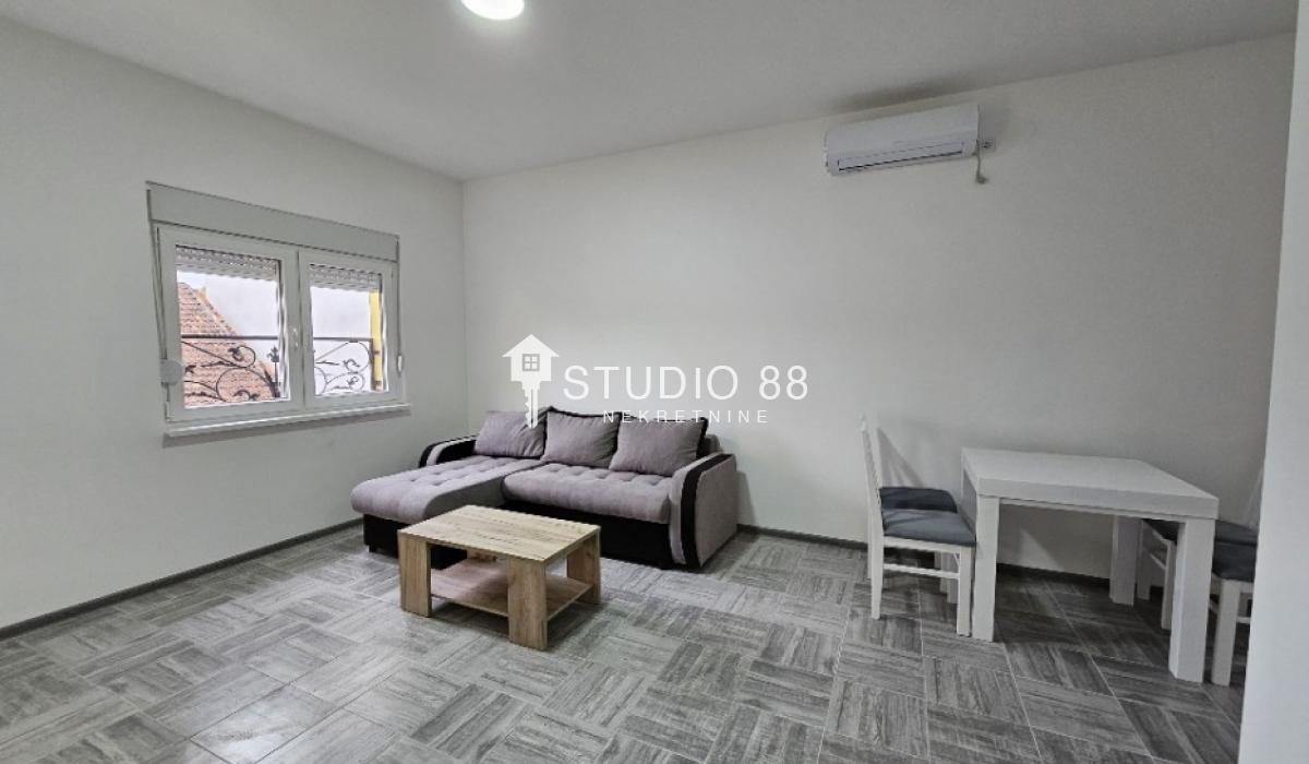 Opis: Nov dvosoban stan u širem centru grada na prvom spratu. Sastoji se od spavaće sobe, open space prostora u kom su kuhinja, trpezarija i dnevni boravak, hodnika, kupatila i terase. Stan je nov, opremljen sa novim stvarima. Podno grejanje na gas. Useljivo od 01.11.2025.