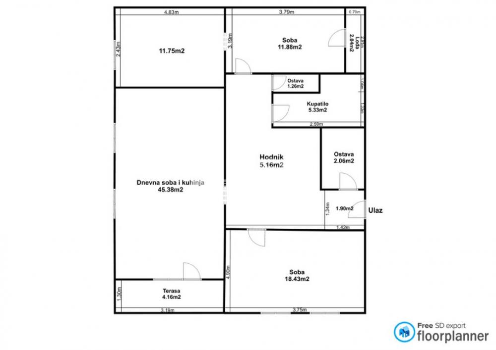 Uknjižen je na 98m2, tačnim premerom izmereno je 116m2. agencijska provizija 2%