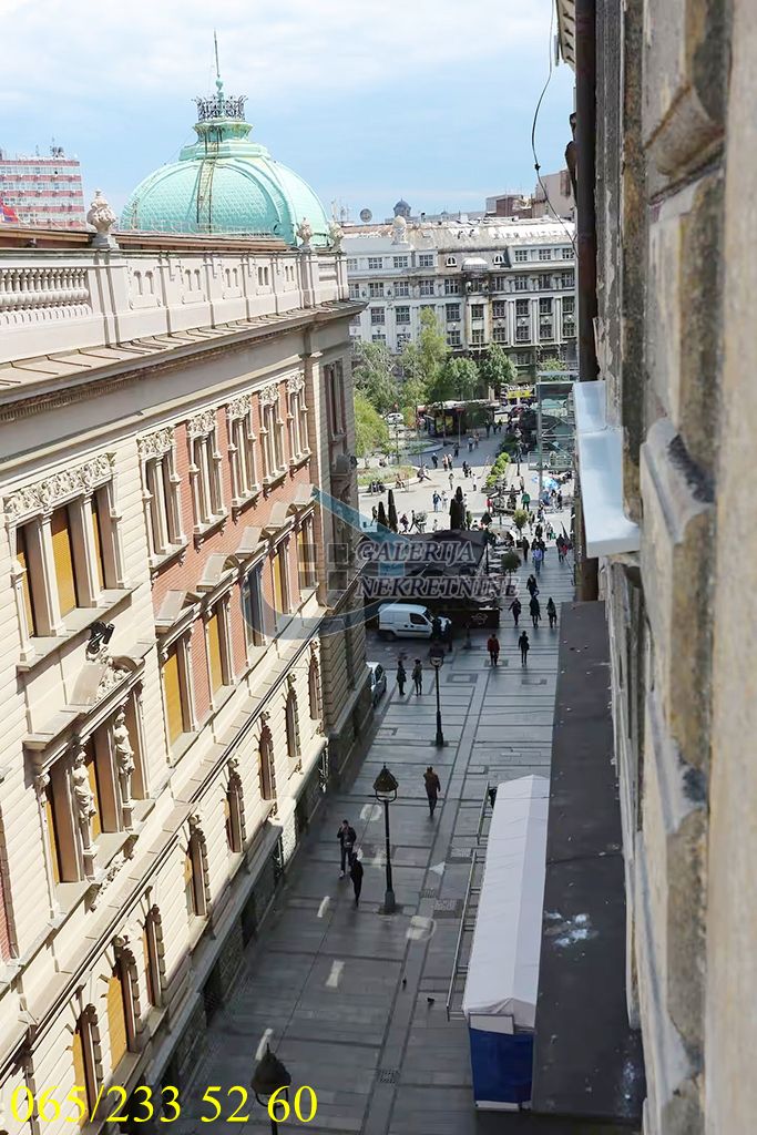 U prilici smo da vam ponudimo odličnu trosobnu nepokretnost na četvrtom spratu od četri, salonske zgrade iz 1926-te godine. Sam stan dobrog rasporeda prostorija i maksimalno iskorišćene kvadrature, vrlo je svetao i potpuno izolovan od buke. Dvostrano orijentisan, sa jedne strane ka pešačkoj zoni, sa druge ka zgradi Narodnog muzeja. Potpuno je rekonstruisan i renoviran najkvalitetnijim i modernim materijalima, sa ukusom osmišljen do detalja. Prodaje se kompletno namešten i opremljen. Pri renoviranju je zamenjena međutavanska konstrukcija, pa je stvorena mogućnost pripajanja tavanskog prostora površine 60m2 (uz traženje saglasnosti stanara). Dva kupatila dodatno doprinose konforu. Grejanje i hlađenje je putem toplotne pumpe sa podnim grejanjem u hodniku i kupatilima i plafonskim razvodom po svim sobama – energetski efikasan, tih i udoban sistem, koji omogućava potpunu kontrolu klime tokom cele godine.