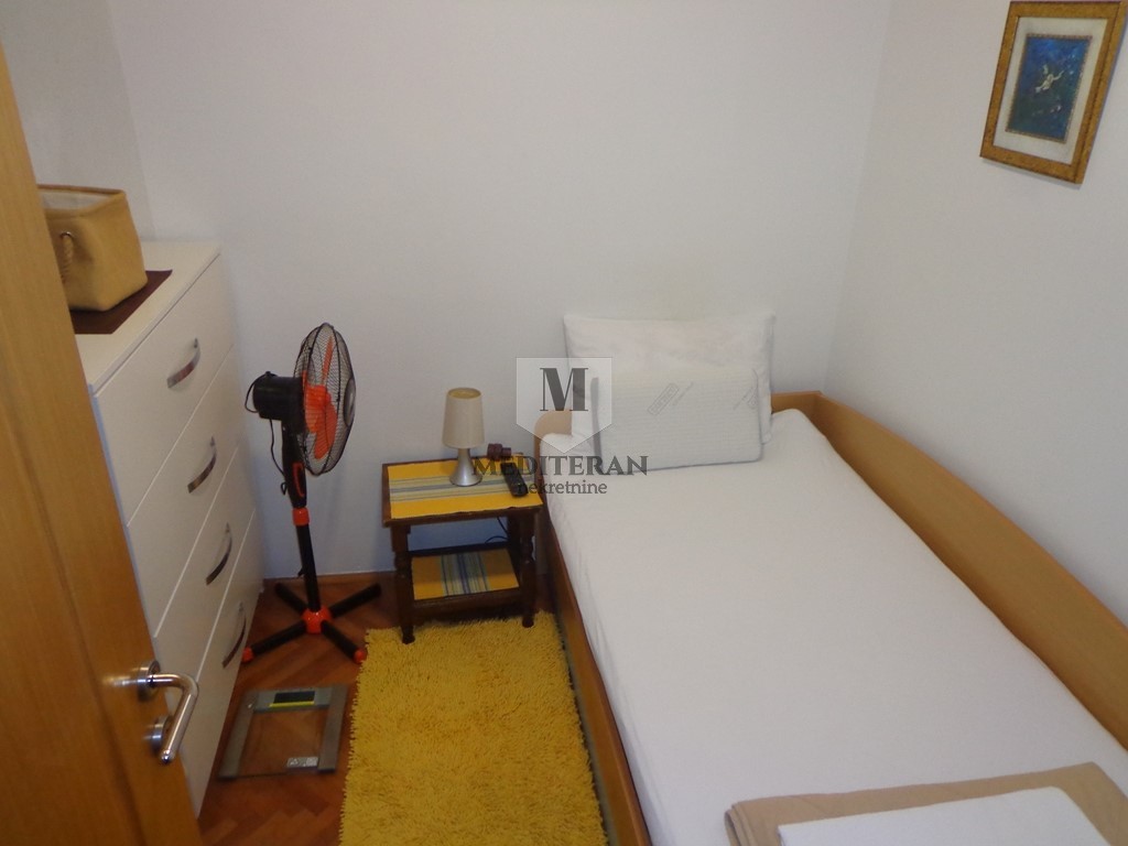 Opis: Izdaje se kompletno namješten dvosoban stan površine 65m2 sa pogledom na more – Topla1.