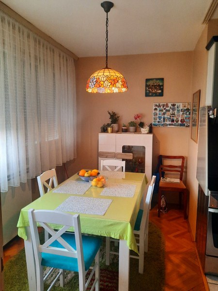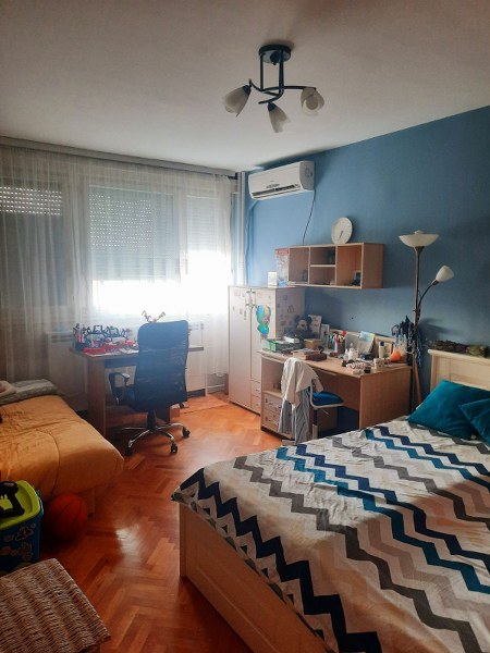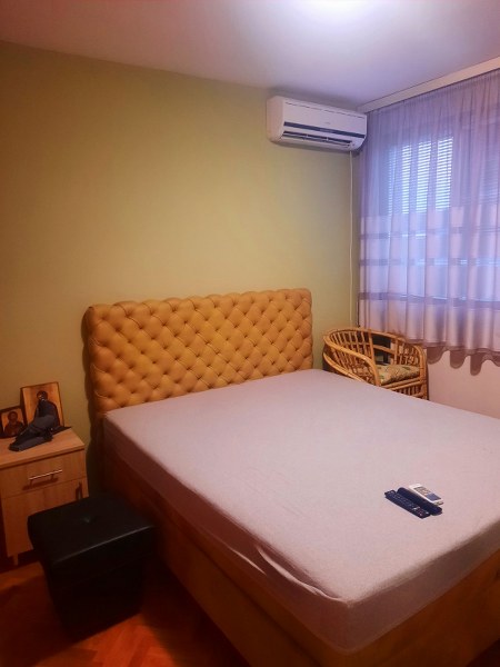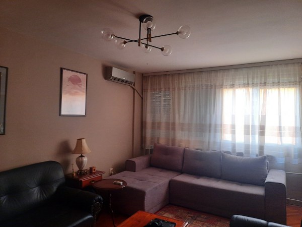 Opis: Sredjen stan koji ne zahteva velika ulaganja. Sastoji se od dnevnog boravka, kuhinje sa trpezarijom, dve spavace sobe, hodnika i kupatila. Moguca kupovina i dela namestaja koji je u stanu. Veliki parking prostor oko zgrade, dva lifta.