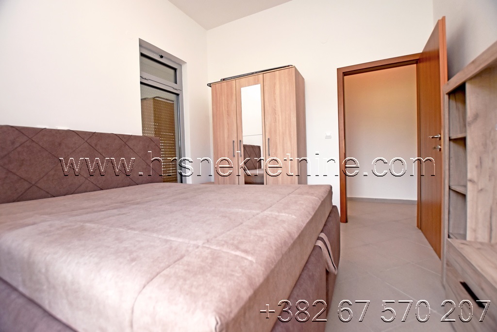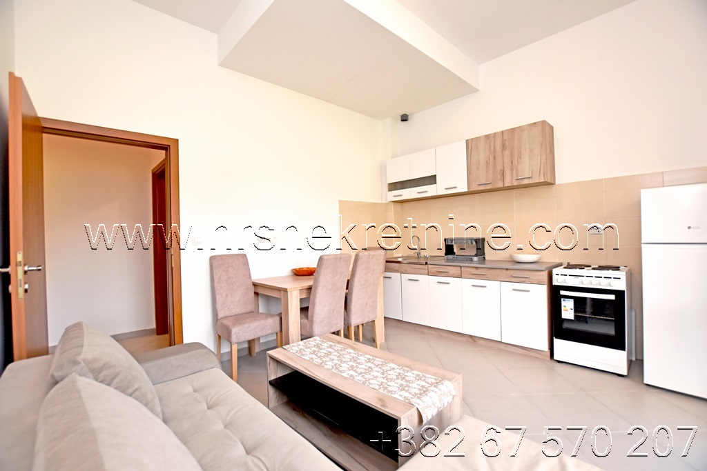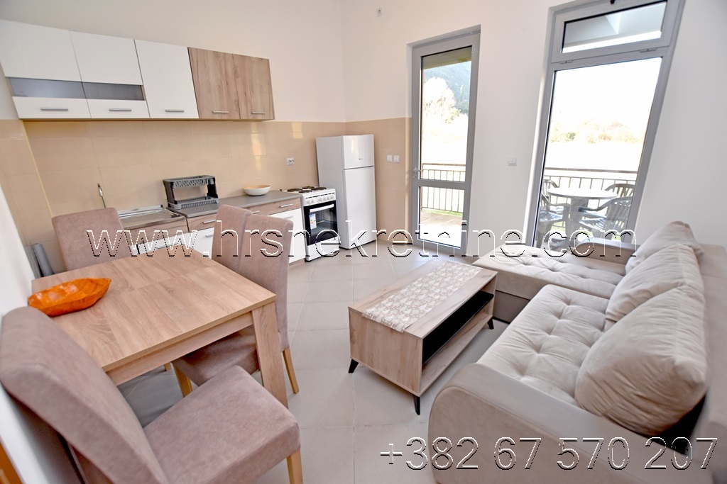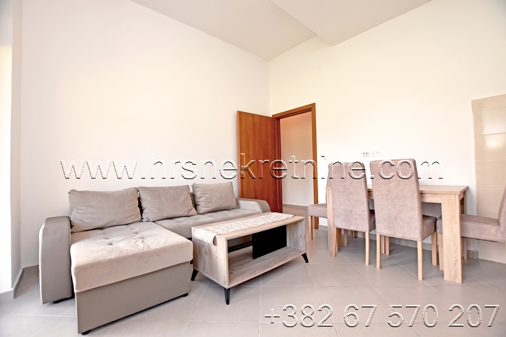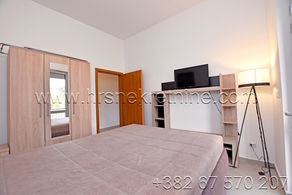 Opis: Jednosoban opremljen stan Sutorina Herceg Novi. Stan se nalazi u prizemlju stambene zgrade novije gradnje (stara oko 10 godina). U neposrednoj blizini nalaze se škola i autobusko stajalište, dok su veći marketi i centar grada udaljeni svega nekoliko kilometara. Raspored prostorija: hodnik, spavaća soba, dnevna soba sa kuhinjom, kupatilo i terasa. Stan se izdaje na duži period (minimum godinu dana) uz potpisivanje ugovora. Cijena: 300 eura mesečno + režije. Depozit: 1 mesečna kirija.