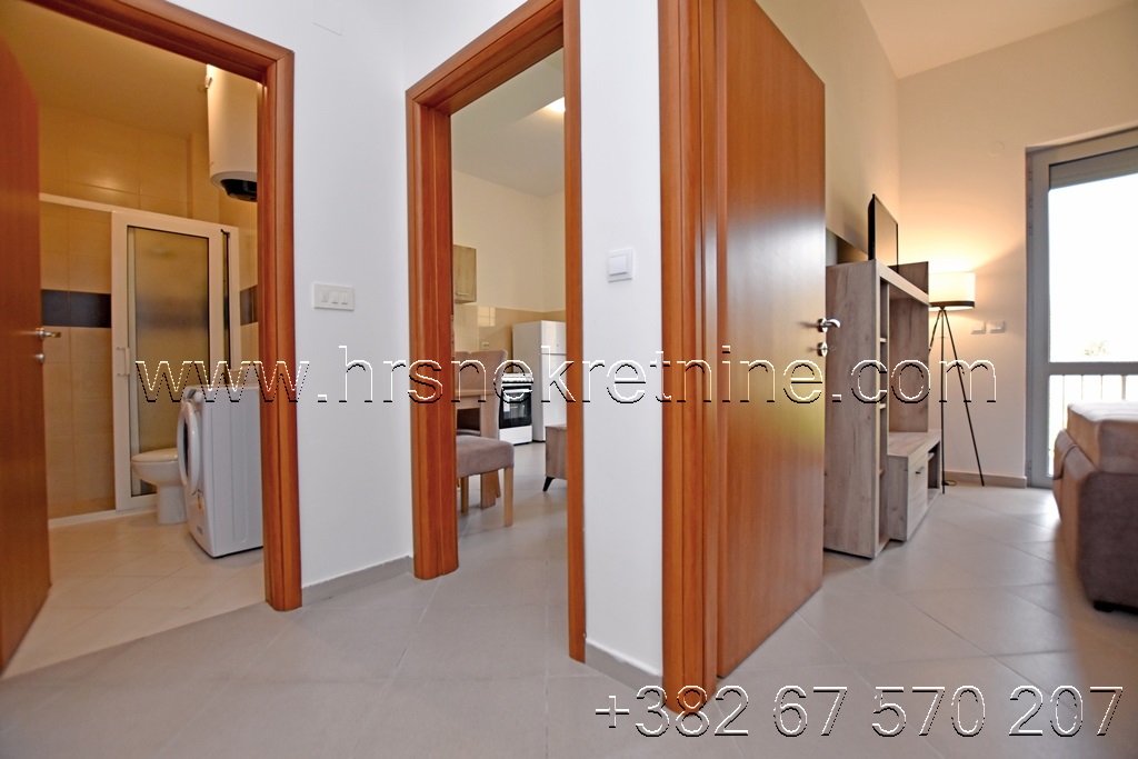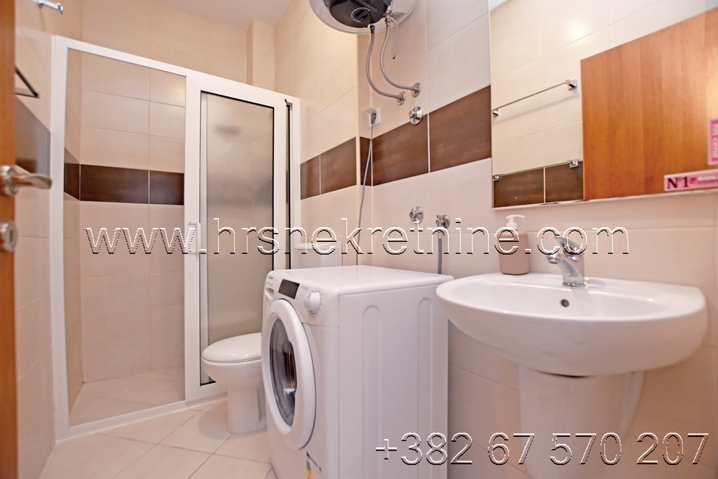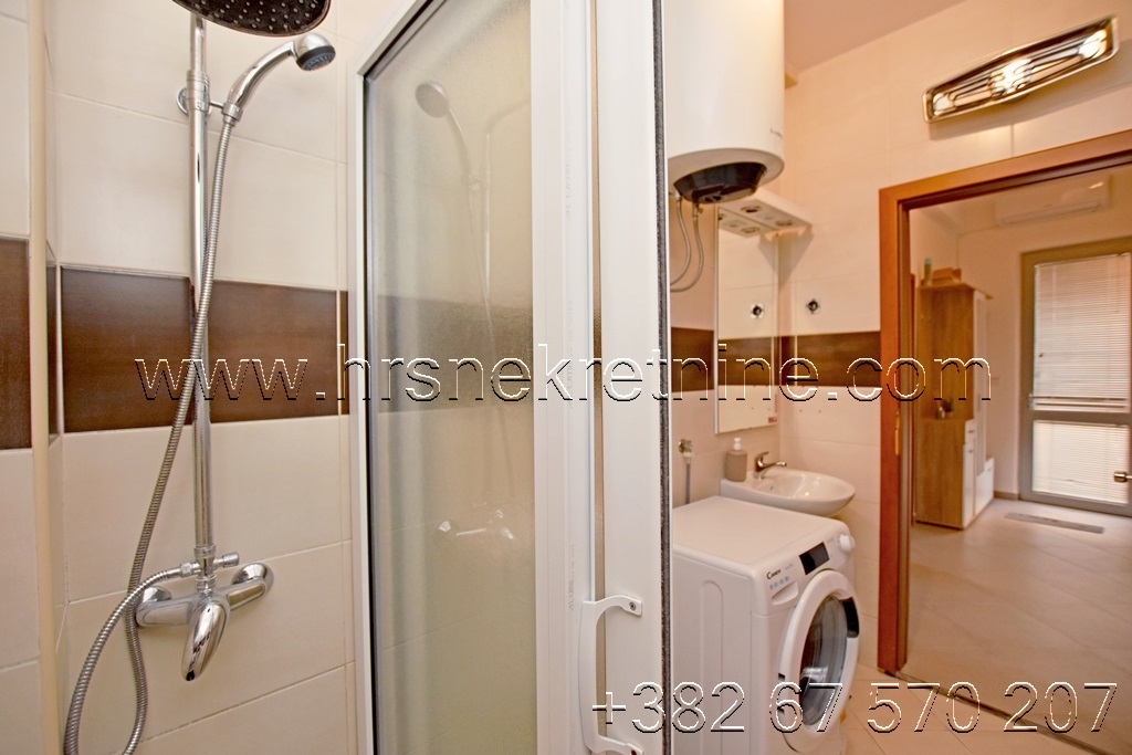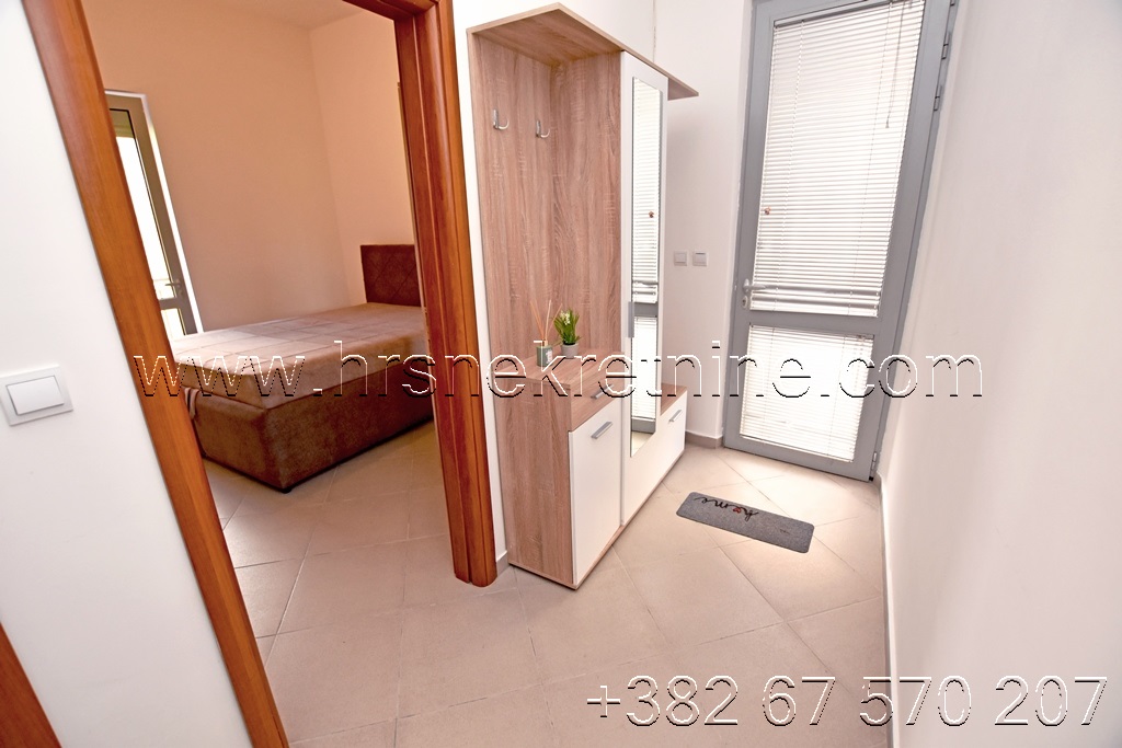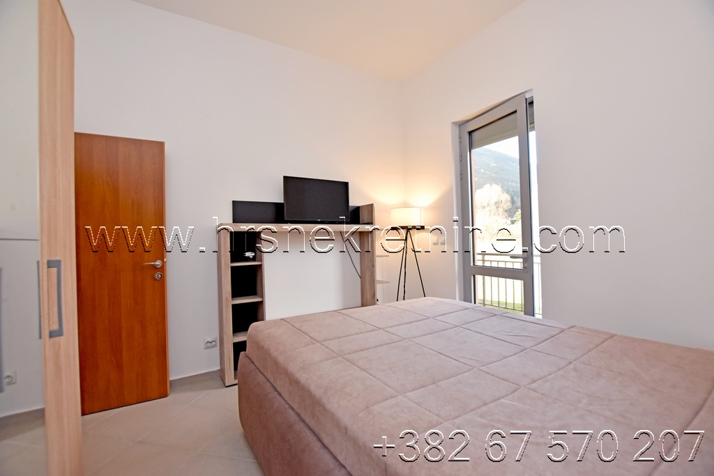 Opis: Jednosoban opremljen stan Sutorina Herceg Novi. Stan se nalazi u prizemlju stambene zgrade novije gradnje (stara oko 10 godina). U neposrednoj blizini nalaze se škola i autobusko stajalište, dok su veći marketi i centar grada udaljeni svega nekoliko kilometara. Raspored prostorija: hodnik, spavaća soba, dnevna soba sa kuhinjom, kupatilo i terasa. Stan se izdaje na duži period (minimum godinu dana) uz potpisivanje ugovora. Cijena: 300 eura mesečno + režije. Depozit: 1 mesečna kirija.