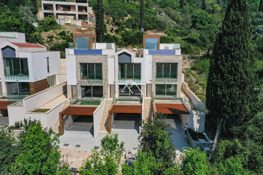 Gotov townhouse sa 2 spavaće sobe (K-2) i garažom za 2 automobila u novom kompleksu premium klase u Tivtu. Kompleks se nalazi na blagom uzvišenju, okružen zelenilom i u blizini kompletne gradske infrastrukture. Udaljenost od mora je 400 m. Iz panoramskih prozora pruža se predivan pogled na more, planine, Tivat i Porto-Montenegro.