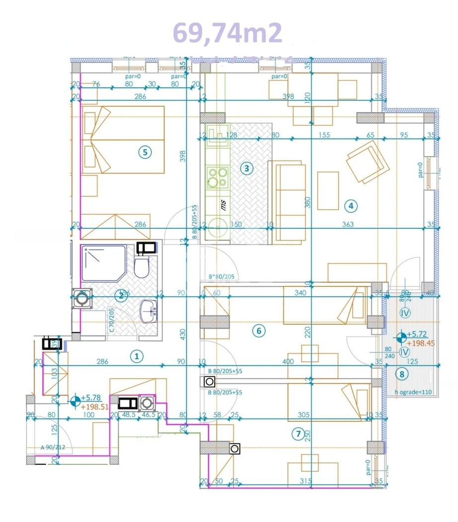 Opis: Troiposoban stan u izgradnji na najprestižnijoj lokaciji u Centru. Struktura hodnik, kupatilo, dnevni boravak sa trpezarijom i kuhinjom koji ima izlaz na terasu, tri spavaće sobe od kojih jedna ima izlaz na istu terasu. Najviši kvalitet gradnje, stan opremljen vrhunskim materijalima. Drugi sprat u zgradi sa liftom. Grejanje podno na gas. Atraktivna ulica u kojoj se nalaze stambeni objekti, zgrade i porodične kuće. U blzini supermarket, banke, pošte, apoteke i svi neophodni komercijalni objekati. Rok završetka jul 2026. Cena 146.300€ sa PDV-om. Šifra oglasa: 1603-1/2