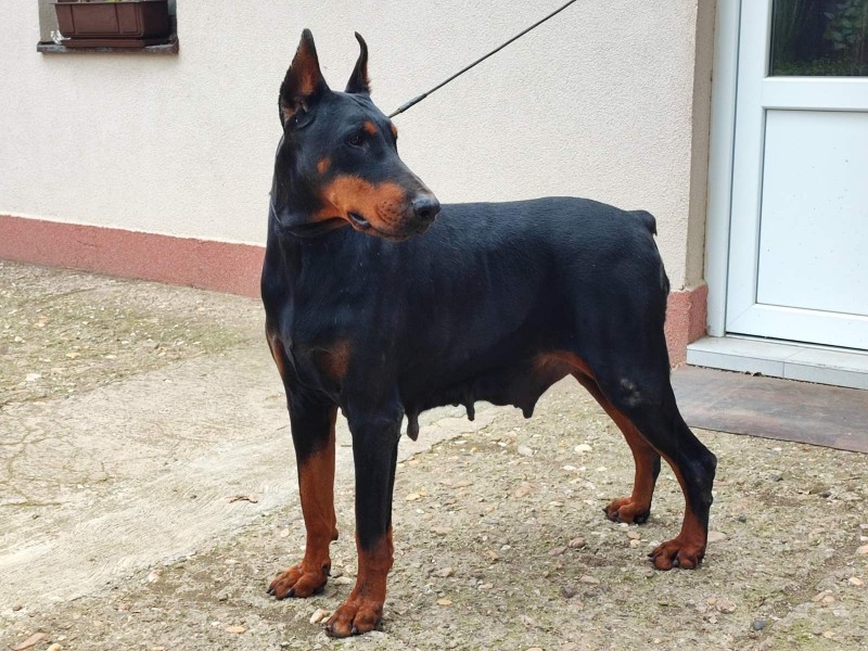 Opis: Prodajem skotnu zenku dobermana. 14.09.2025 uparena sa CAPO DI PATRIA PACO.