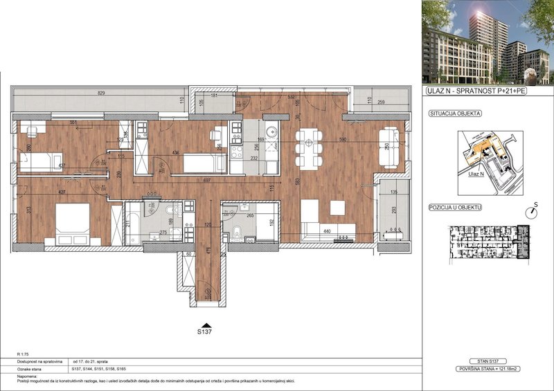Opis: U ponudi je četvorosoban stan površine 121,18 m², sa orijentacijom prema jugozapadu ili severoistoku,