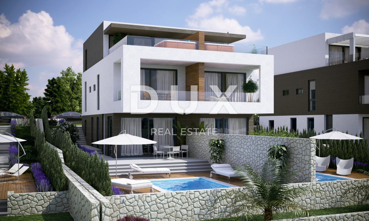 Posredujemo u prodaji predivnog apartmana u prizemlju urbane vile s 4 stambene jedinice. Apartman se sastoji od dvije spavaće sobe, dnevnog boravka s kuhinjom, hodnika, kupatila i natkrivene terase. Pripadaju mu vrt, bazen i parkirno mjesto u vlasništvu. Stambena površina apartmana iznosi 62 m2, dok je s okućnicom, bazenom i parkirnim mjestom sveukupna površina 90 m2 (koeficijentima). Novogradnja je izgrađena vrhunskim materijalima i s podnim grijanjem u svim prostorijama, a lokacija je u neposrednoj blizini mora i plaže.
