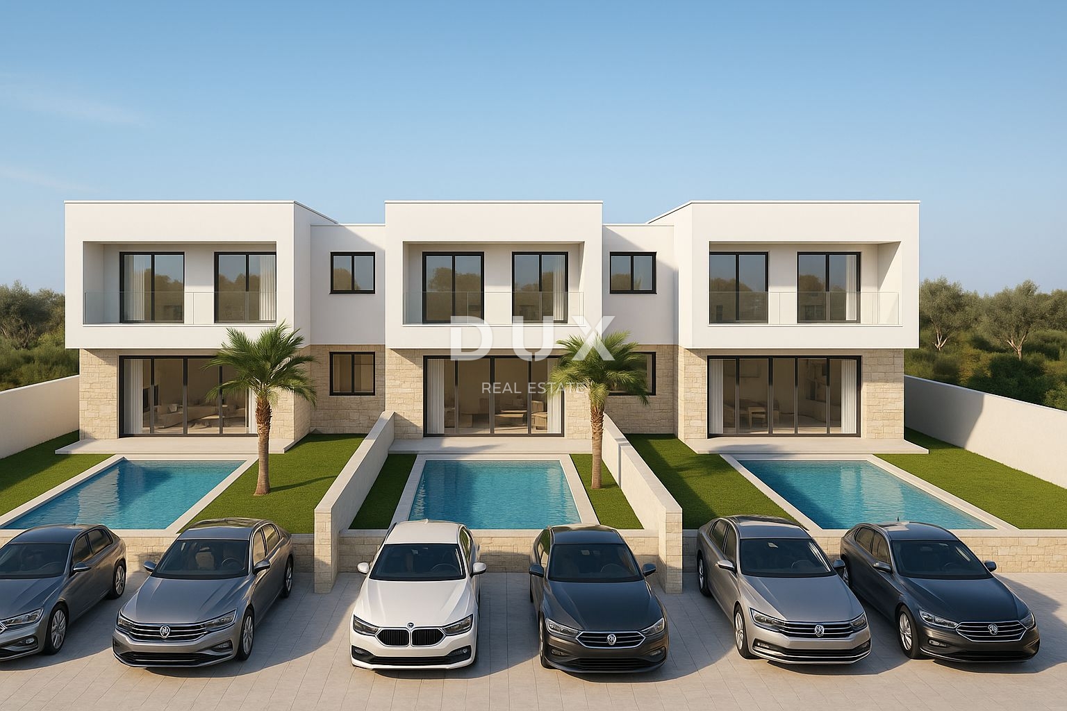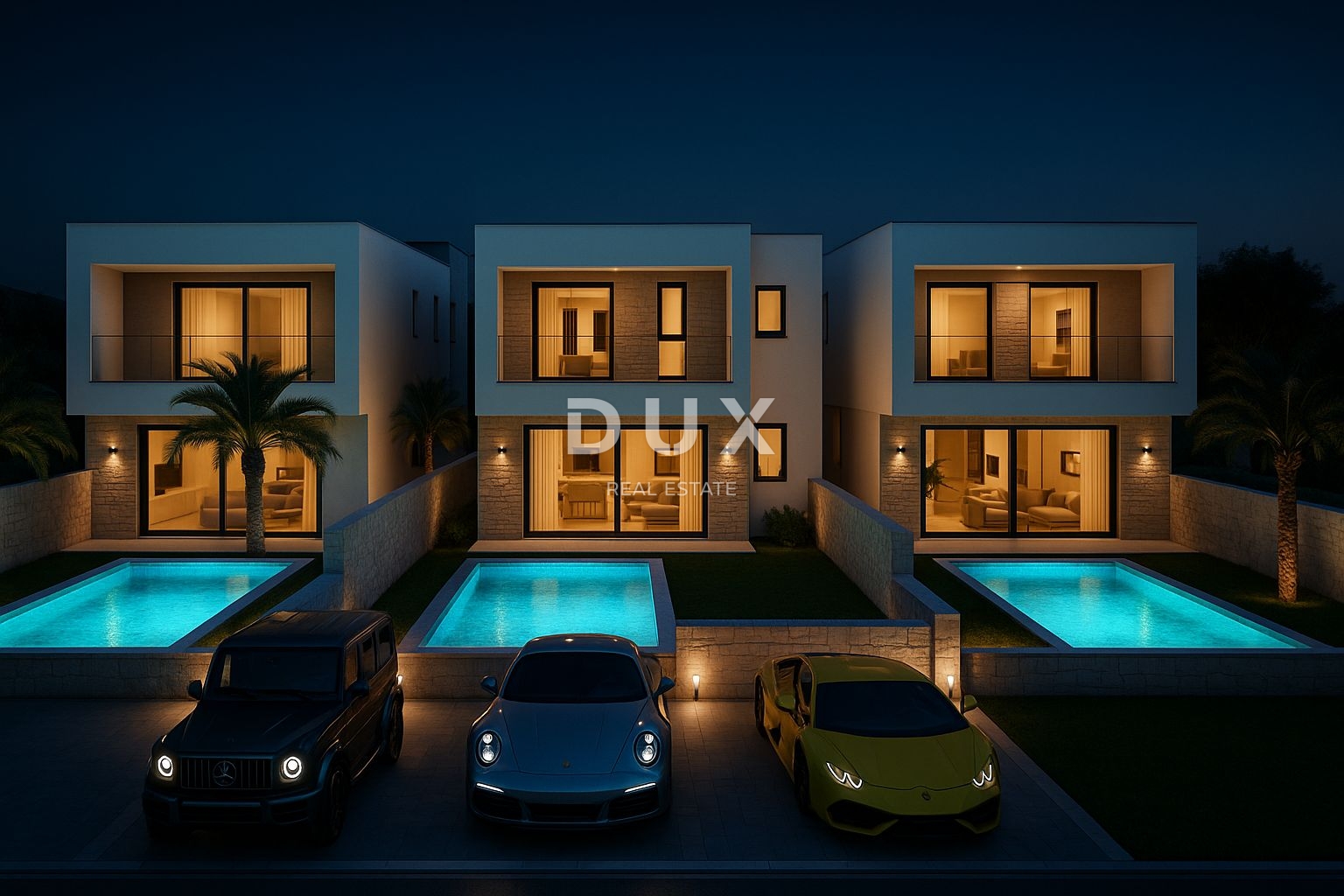 Idealno za prenamjenu u 3 moderne vile u stilu gradske kuće, svaka s vlastitim vrtom, terasom i bazenom.
